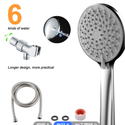 1. 1个 6功能增压手持大花洒,重量:240 g;