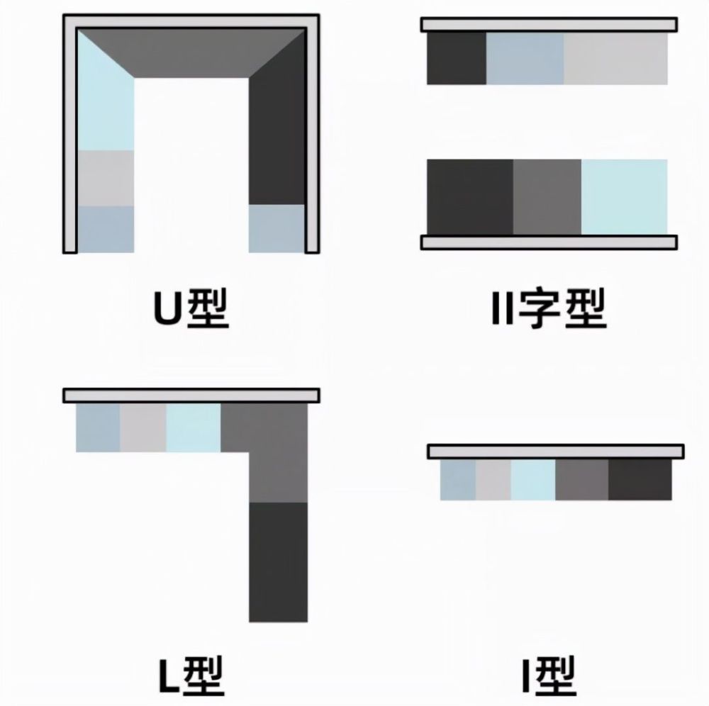 不同户型、不同面积的厨房适合的动线设计不一样,我们要遵循“洗菜-切菜-炒菜”的动线进行科学布局,尽量减少重叠的路线,不用来回奔波让做饭更劳累。