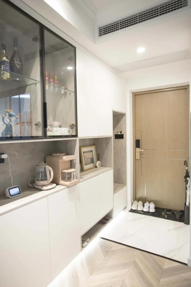 更实用一些的处理办法就是在玄关的区域设计落尘区,将玄关和客厅分隔开,这样就算玄关的位置变脏了也不会影响到客厅的地面,效果会更好一些。