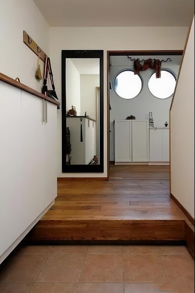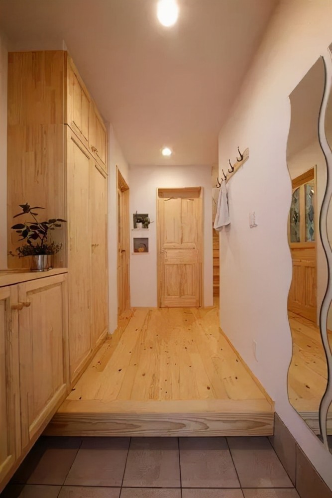 简单的处理方法就是玄关和客厅选择不同材质的地面建材,比如客厅可以选择实木地板,而玄关的位置就可以选择瓷砖,让两个区域有一个划分,清理的时候也会更方便一些。
