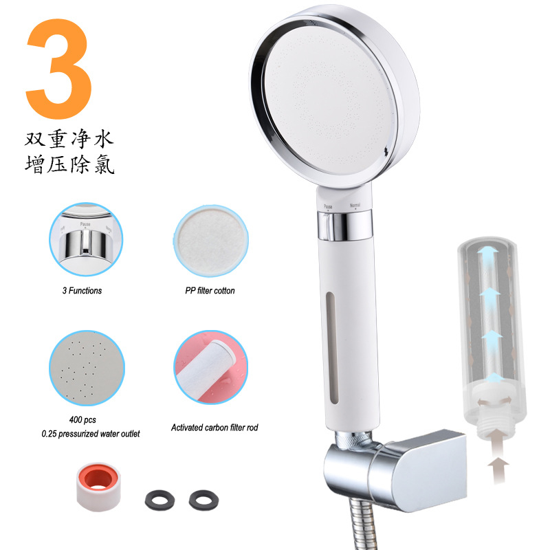 1. 1个 3功能增压除氯美容SPA手持大花洒,重量:240 g;