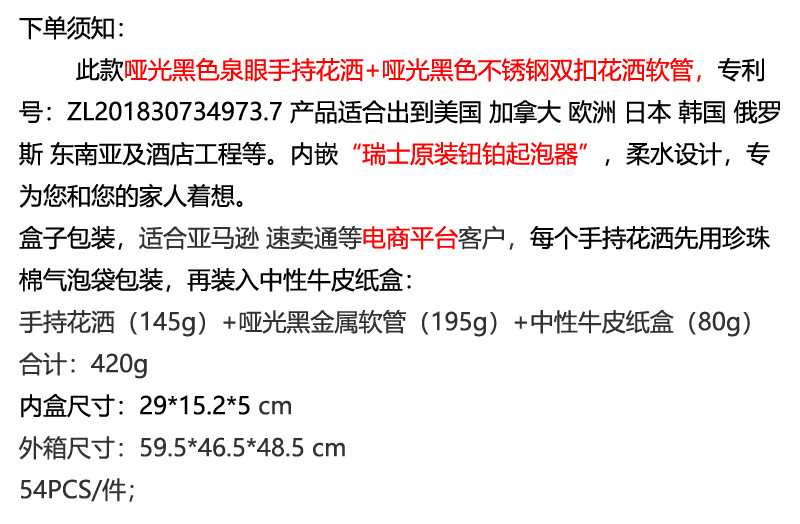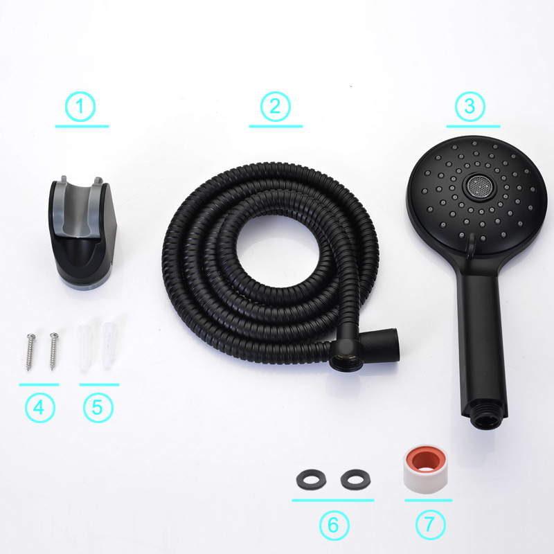 跨境新款欧美韩日哑光磨砂黑色手持花洒 增压节水淋浴喷头套装