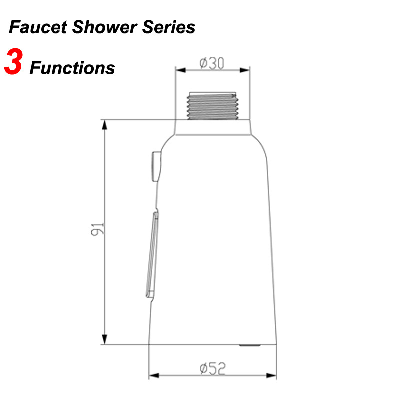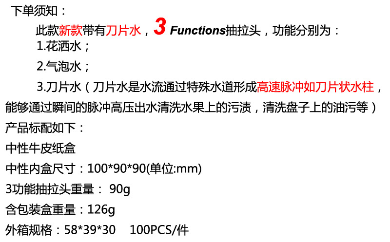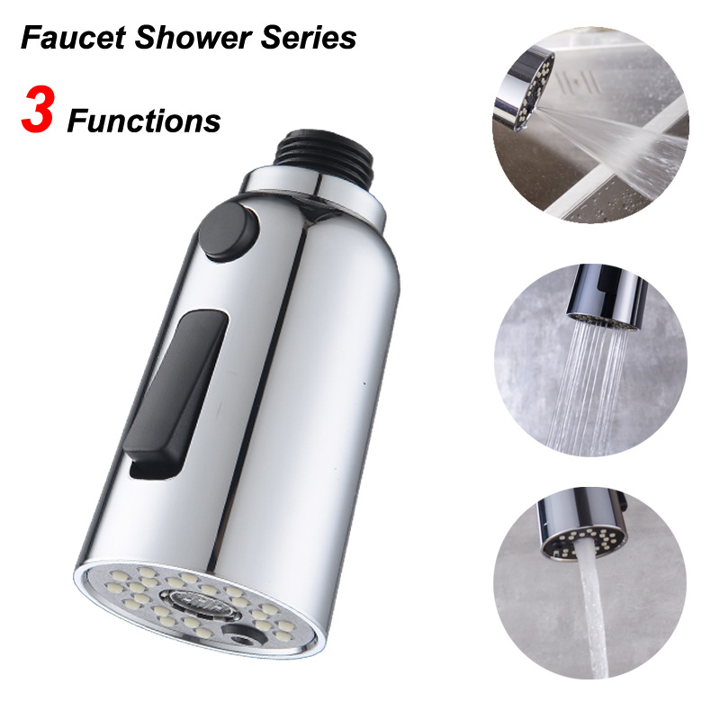 跨境新款厨房菜盆水龙头抽拉头配件 喇叭状按钮切换3功能花洒喷头