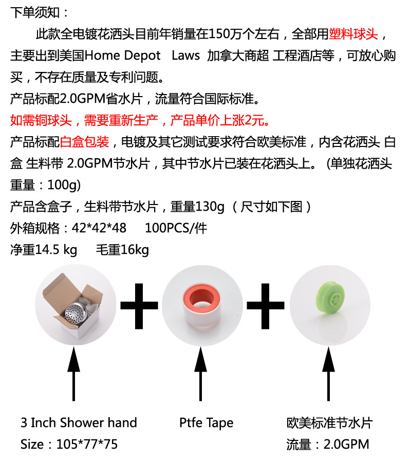 厦门厦颂跨境外贸淋浴增压全电镀花洒顶喷头小莲蓬头宾馆澡堂喷头