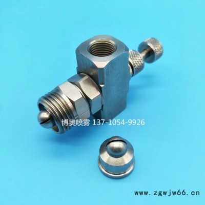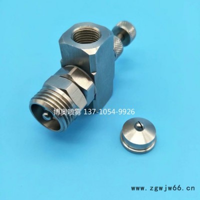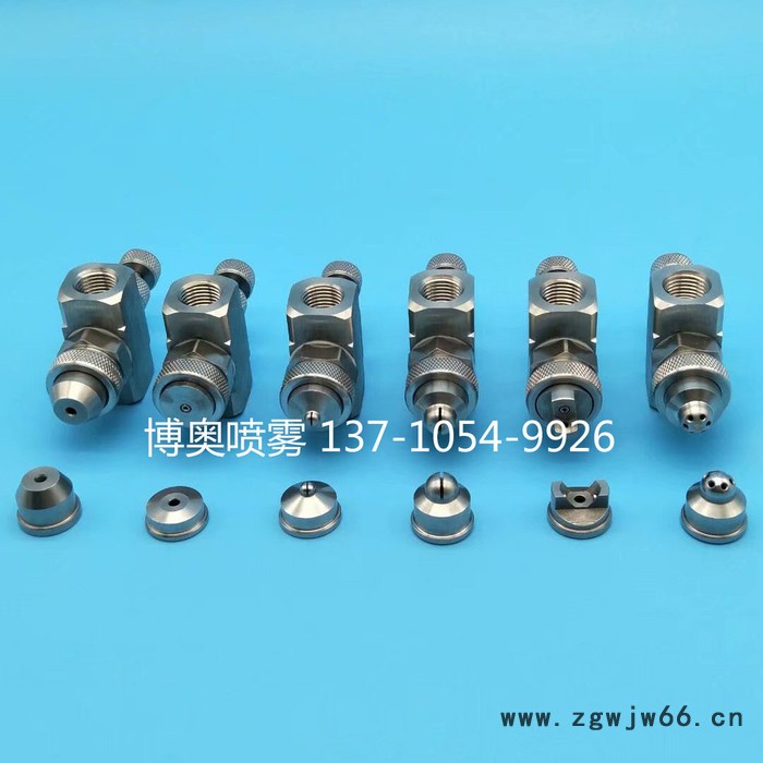 空气雾化喷嘴是二流体喷嘴(空气和液体)利用压缩空气的喷散作用来使物料雾化的,空气雾化喷嘴是空气流和液体流互相影响而产生薄雾的装置,此装置特殊的内部结构设计能使液体和气体均匀混合,产生微细液滴尺寸的喷雾或粗液滴喷雾。通常,通过增加气体压力或降低液体压力可得到更加微细的液滴喷雾,从而导致较高的气体流动率液体流率比。普通型空气雾化喷嘴是空气流和液体流互相影响而产生具有圆形,扇形,环形,广角扇形,等喷雾形状的一类特殊应用喷嘴薄雾的装置,此装置特殊的内部结构设计能使液体和气体均匀混合,产生微细液滴尺寸的喷雾或粗液滴喷雾。