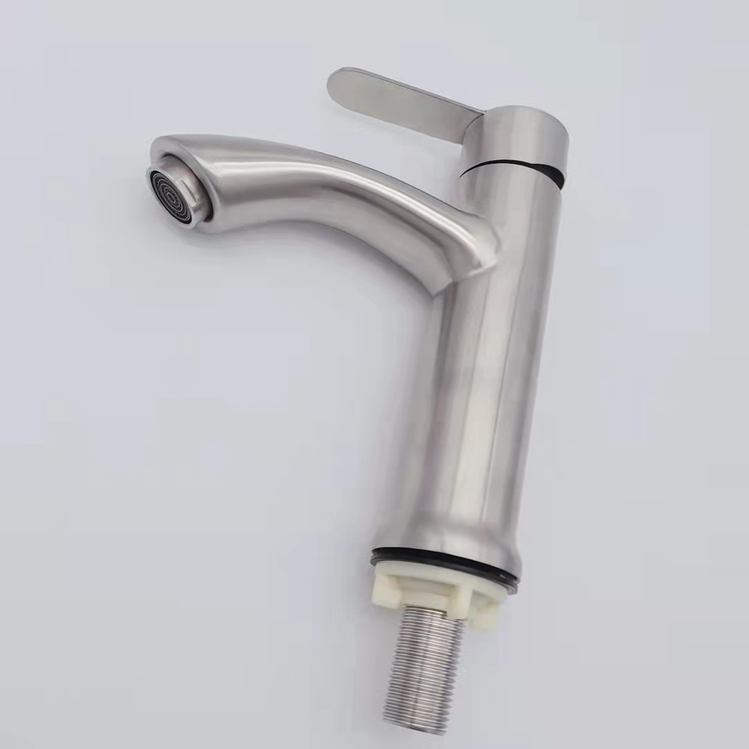 304不锈钢浴室面盆单冷水龙头不锈钢拉丝 洗手盆脸盆龙头厂家直销