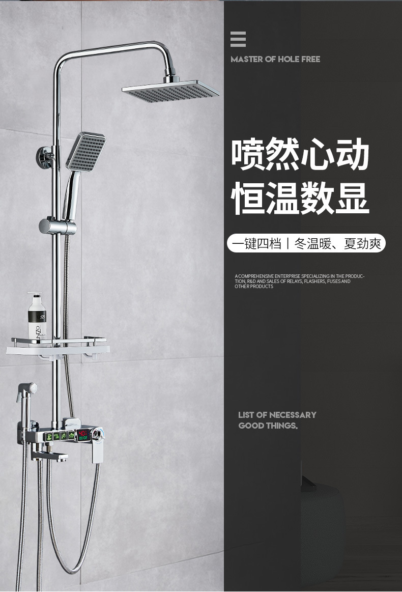 全铜恒温数显淋浴花洒套装家用卫生间黑色卫浴室淋雨顶喷头沐浴器