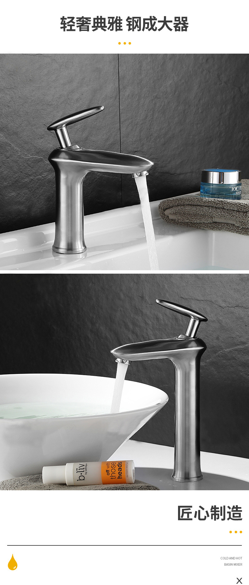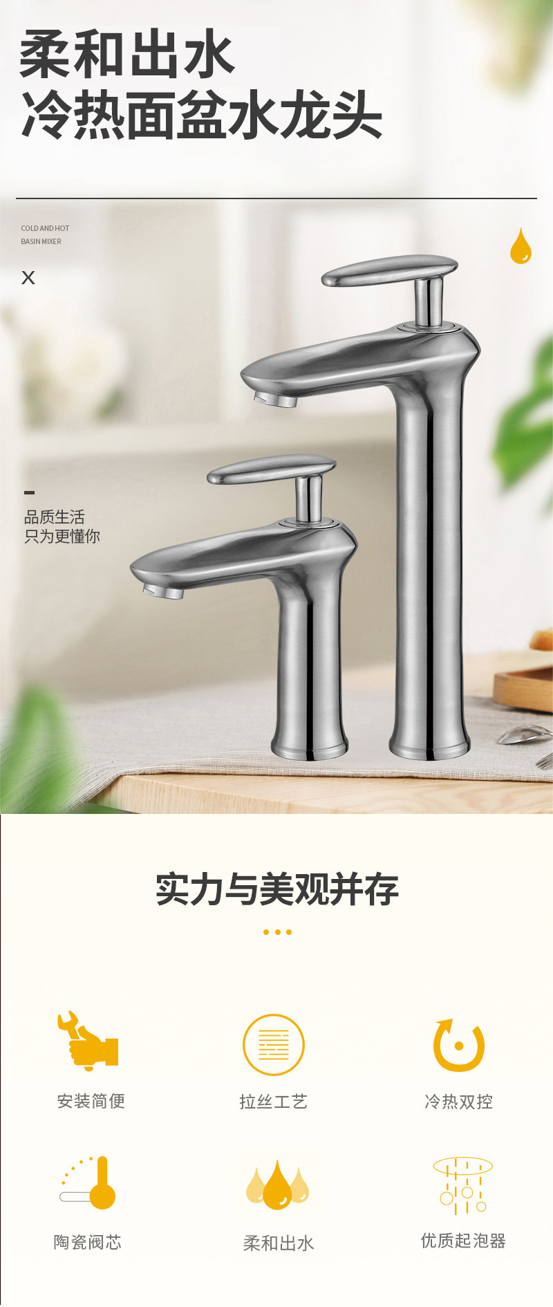 春泓 304不锈钢家用单冷面龙头 冷热卫生间单孔台上盆龙头