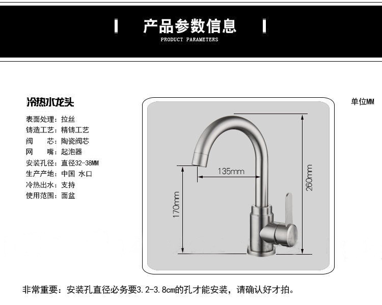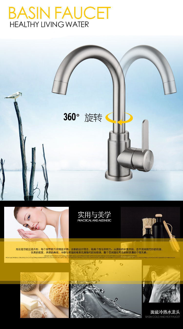 304不锈钢洗脸盆龙头家用冷热浴室面盆可旋转带滚珠龙头
