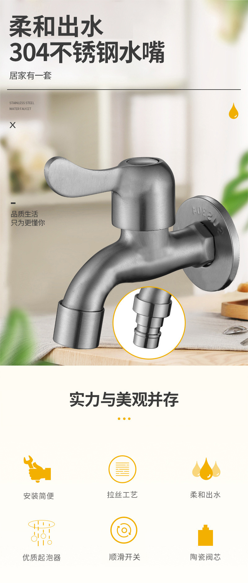 304不锈钢龙头洗衣机水嘴水龙头4分6分铜阀芯快开拖把池单冷龙头
