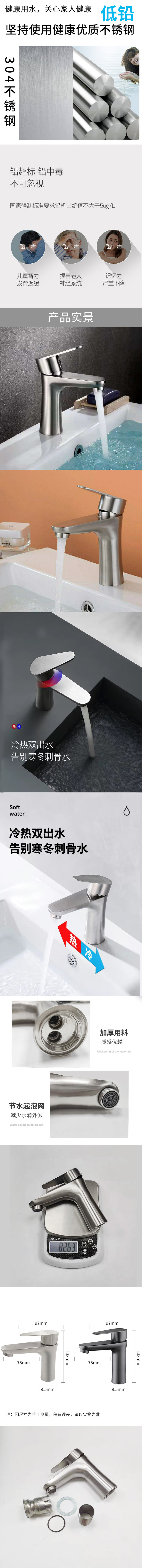 不锈钢小蛮腰冷热面盆水龙头家用卫生间浴室洗手池混合水龙头