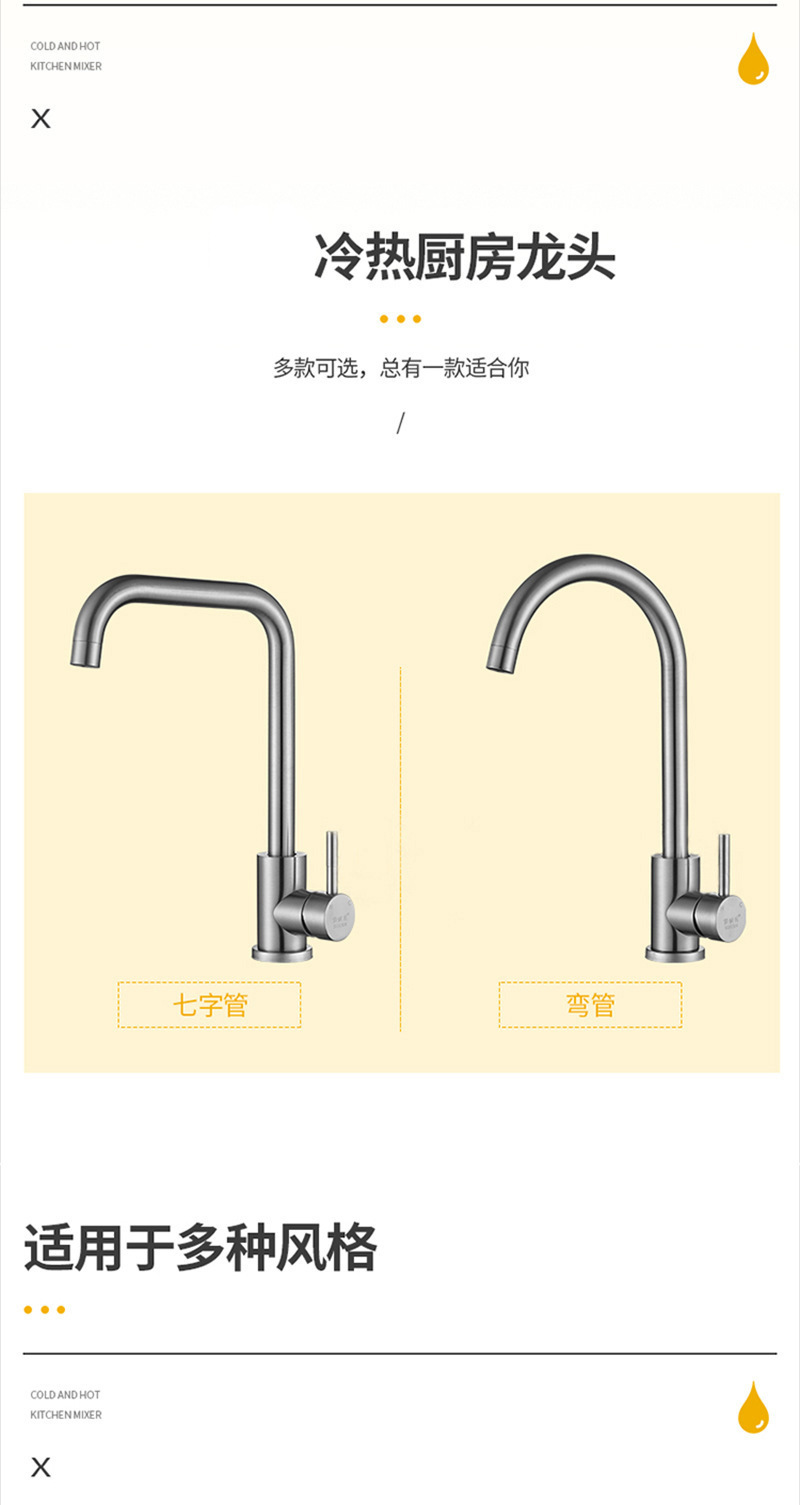 春泓 不锈钢厨房冷热水龙头 洗碗池洗菜盆可旋转冷热水龙头