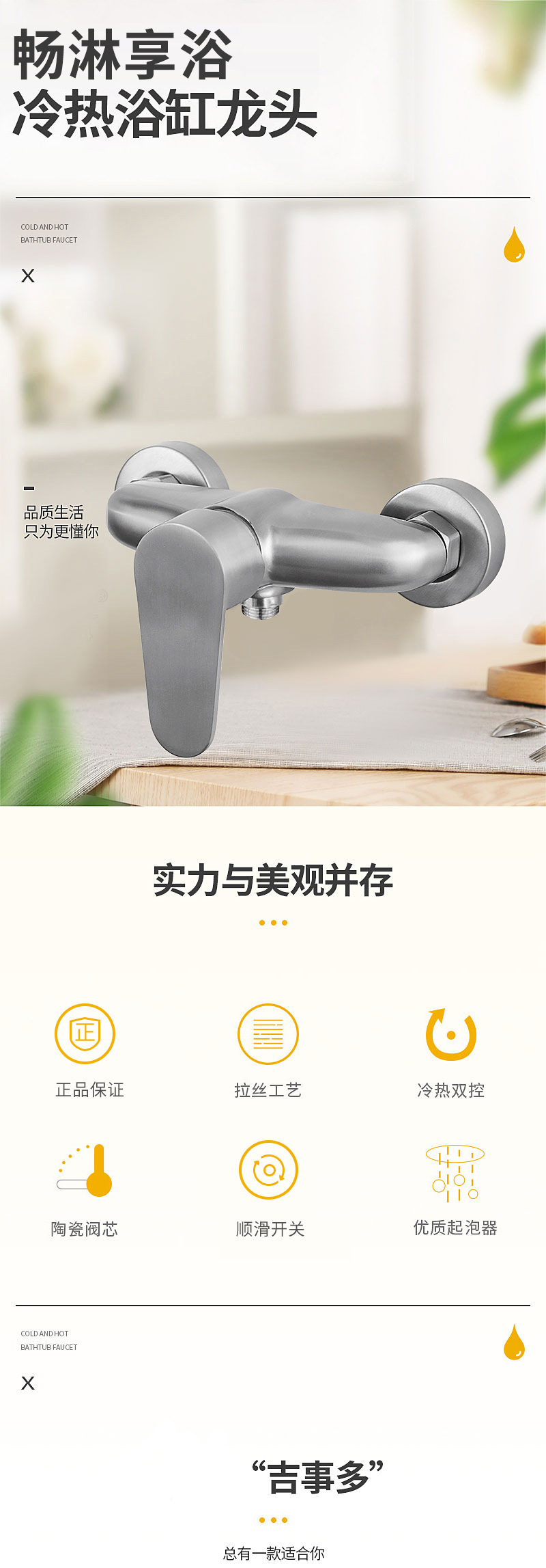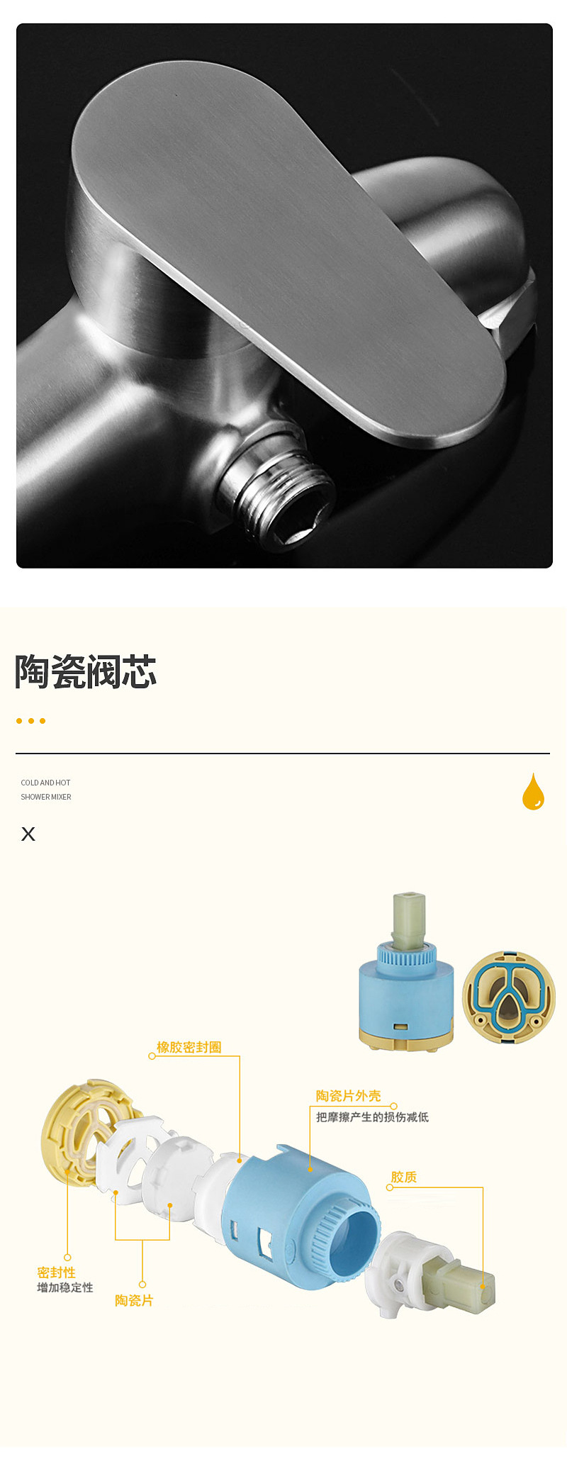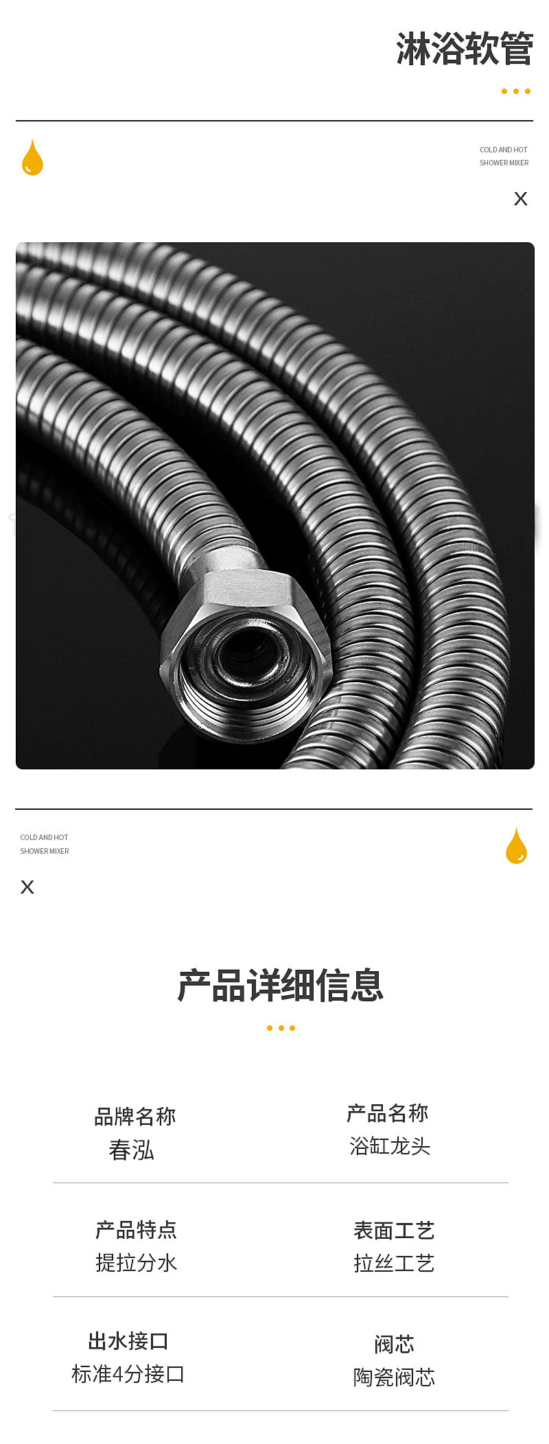 春泓 304不锈钢淋浴龙头家用花洒冷热淋浴龙头混水阀套装