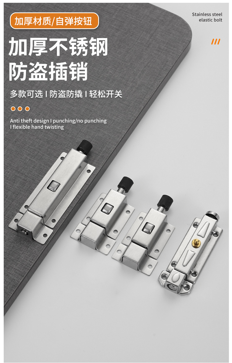 不锈钢自动弹簧插销门锁扣小门窗门栓门扣卫生间木门老式明装门销
