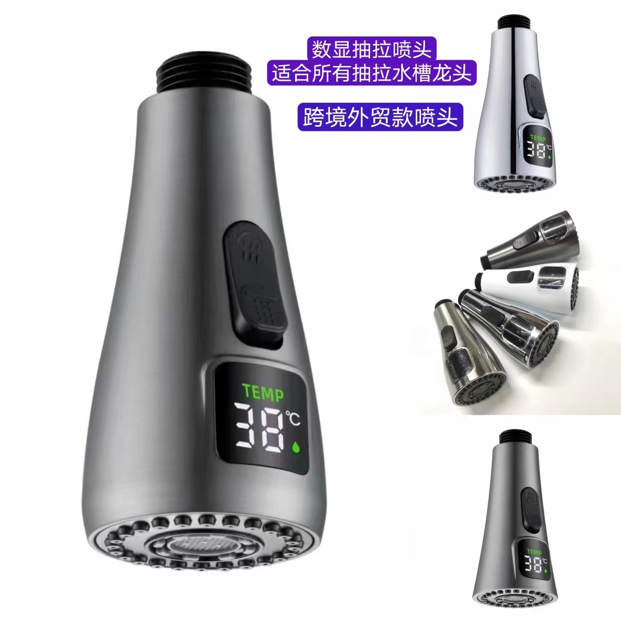 外贸抽拉式水龙头专用数显喷头厨房水槽洗菜花洒喷头小蛮腰出水形