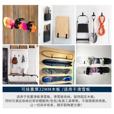 滑雪板墙挂钩悬挂壁支架木板支架存储雪板挂钩车库收纳金属挂架