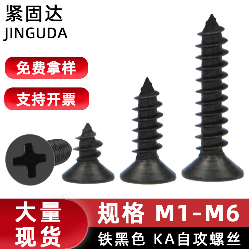 普碳钢十字KA沉头黑色自攻螺丝GB/YB 846十字槽平头黑色螺丝