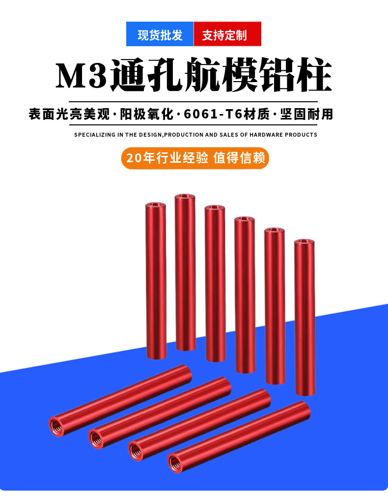 供应航模支架铝柱M3连接拉杆支撑柱双通螺柱空心铝管航模铝柱