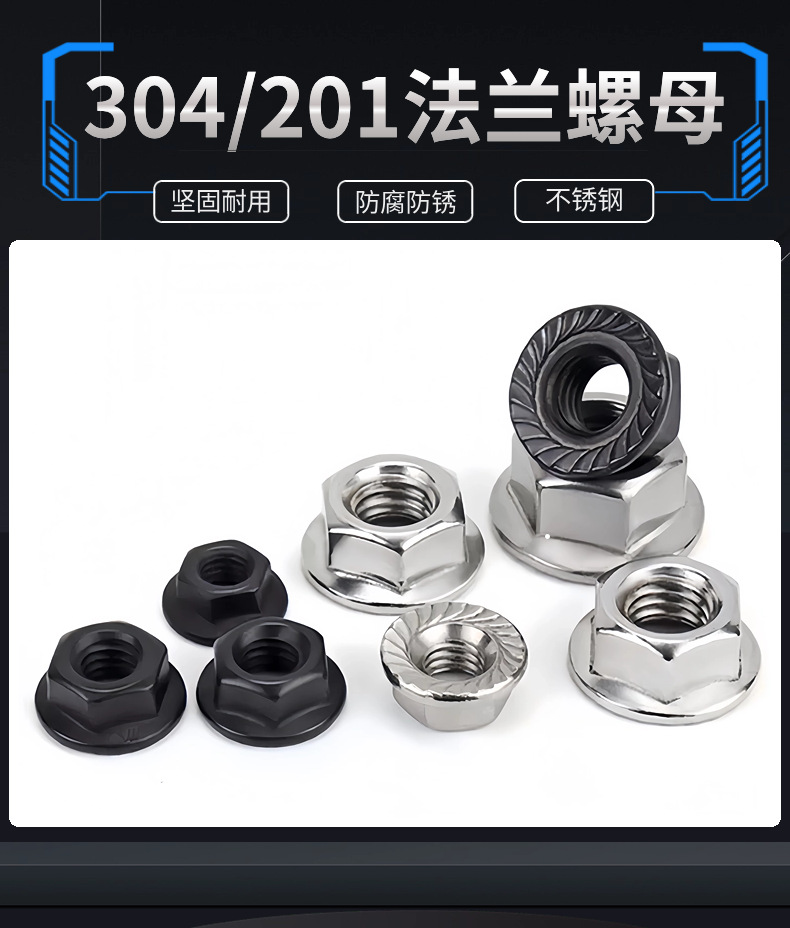 批发法兰螺母304不锈钢六角带齿螺帽带垫DIN9623防滑法兰面螺母