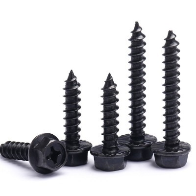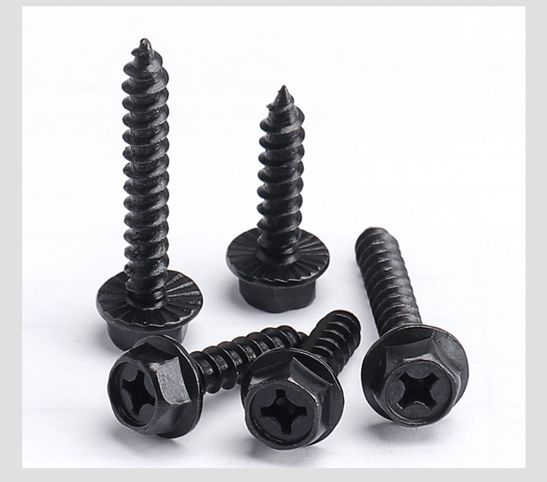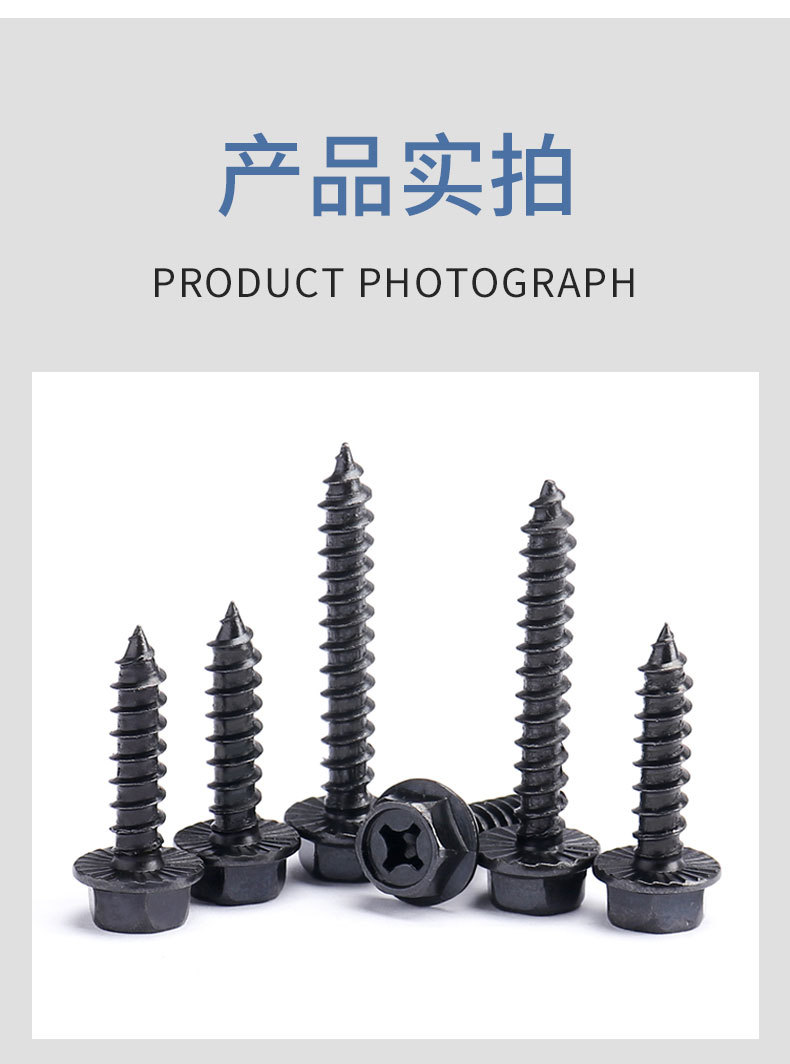 法兰螺丝自攻十字外六角镀黑加硬尖尾木牙螺钉M4M5M6M8x25x30x60