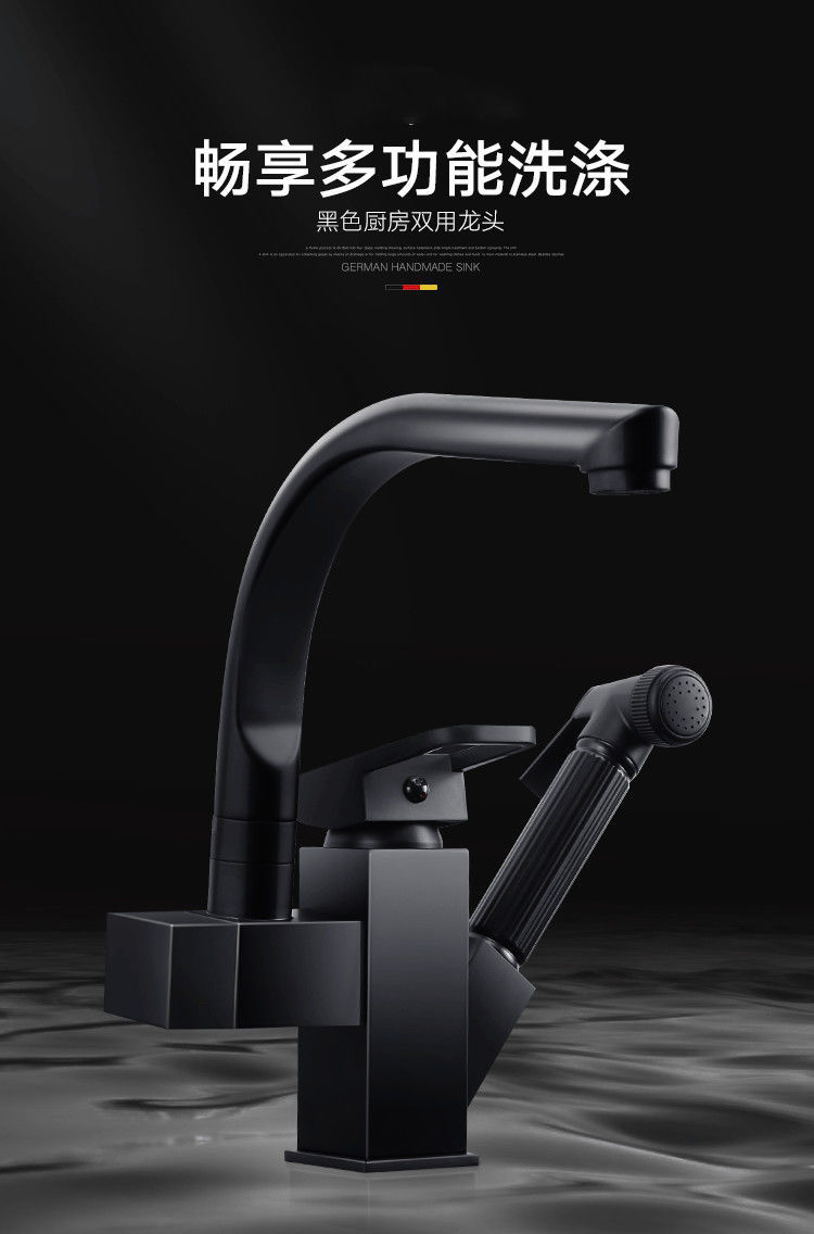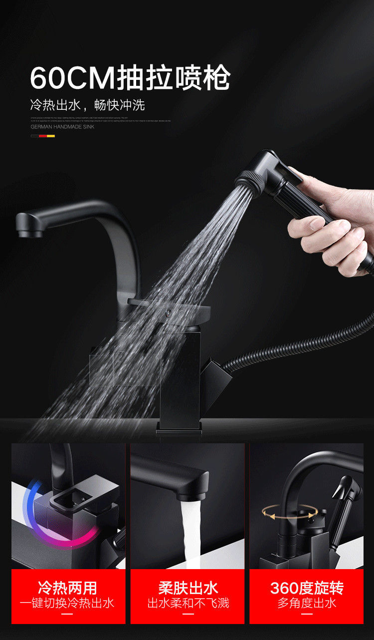 厨房水龙头不锈钢抽拉式冷热水龙头304全铜机器人洗菜盆黑色单冷
