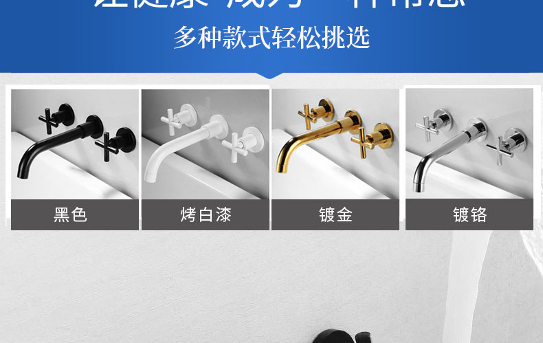 北欧风入墙式面盆水龙头三孔暗装冷热水龙头浴室洗脸盆浴缸水龙头