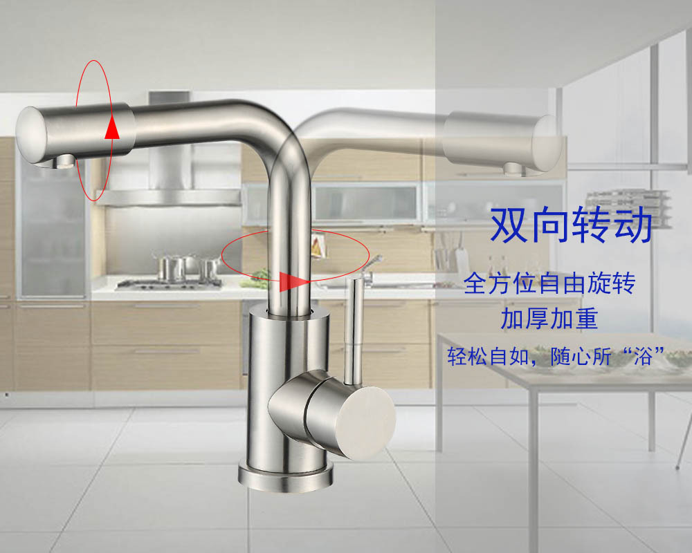 304不锈钢台盆双转动龙头 厨房洗菜盆面盆水龙头洗手盆冷热水龙头