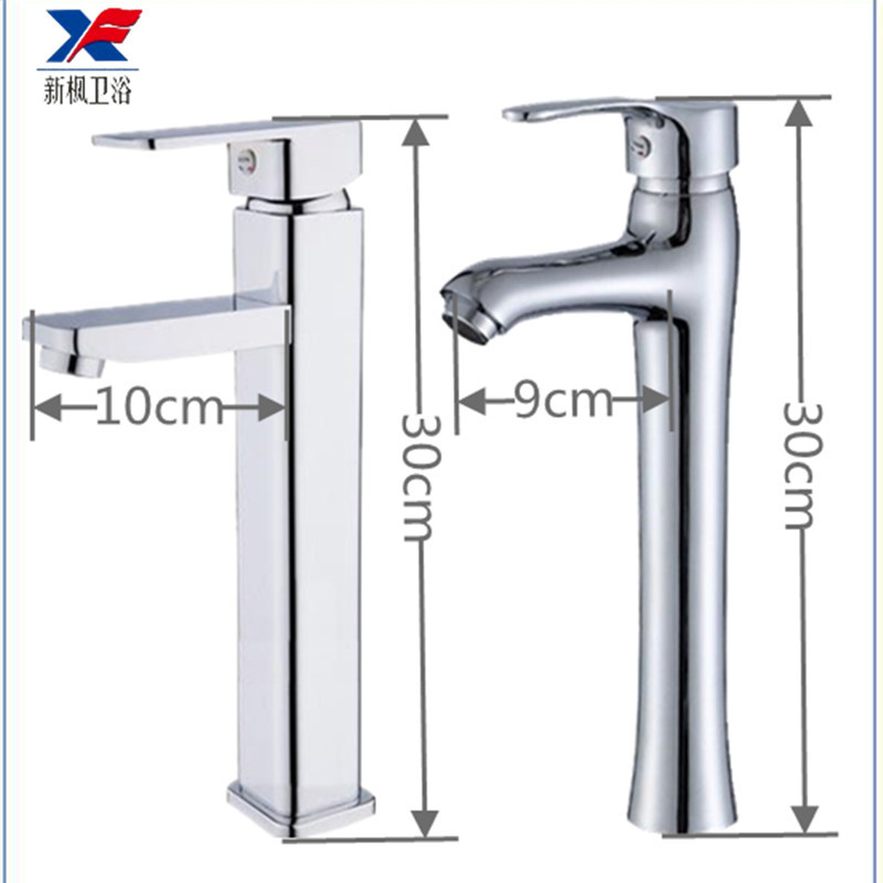 卫生间洗手盆冷热水龙头四方加高单孔台上盆艺术盆面盆冷热水龙头
