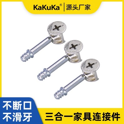 厂家螺丝 三合一连接件 铁杆 衣柜橱柜紧固件 五金 二合一 自攻杆