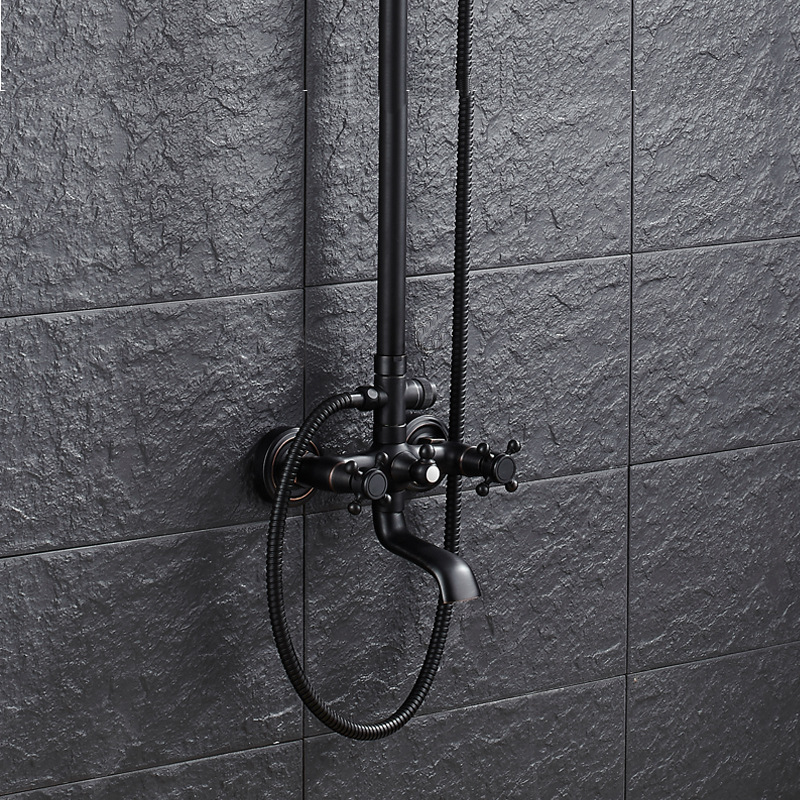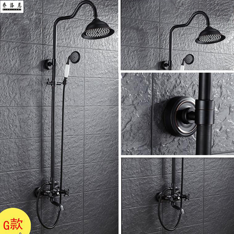 欧式厂家直销黑古铜三档手持套装升降式花洒顶喷淋浴龙头淋浴套装