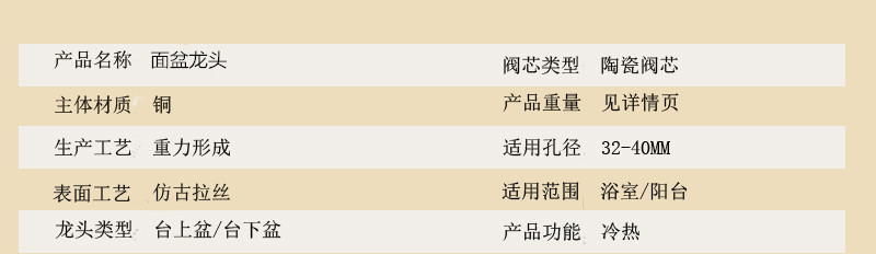 简约复古冷热水面盆龙头台盆浴室洗脸盆水龙头仿古台上盆水龙头