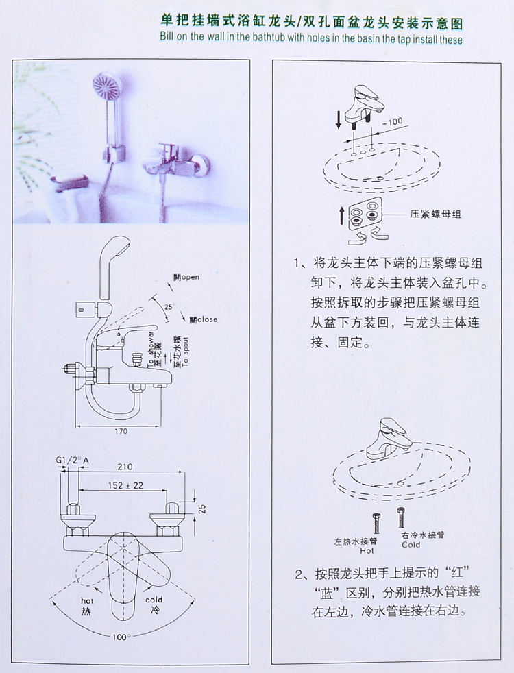 酒店工程简易花洒套装全铜冷热水龙头外贸水龙头 浴缸龙头三联