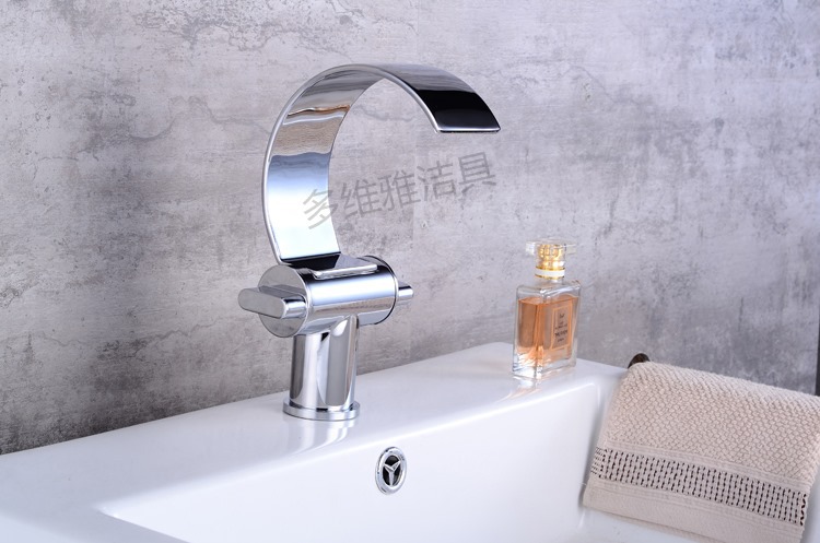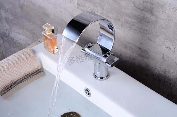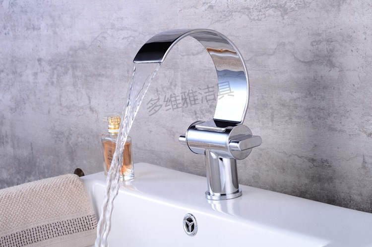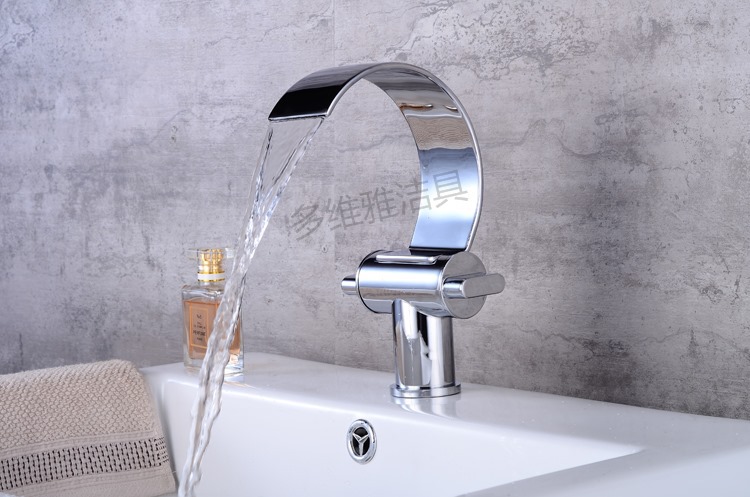 新款全铜宽嘴瀑布面盆水龙头 浴室高档洗脸盆冷热水水龙头