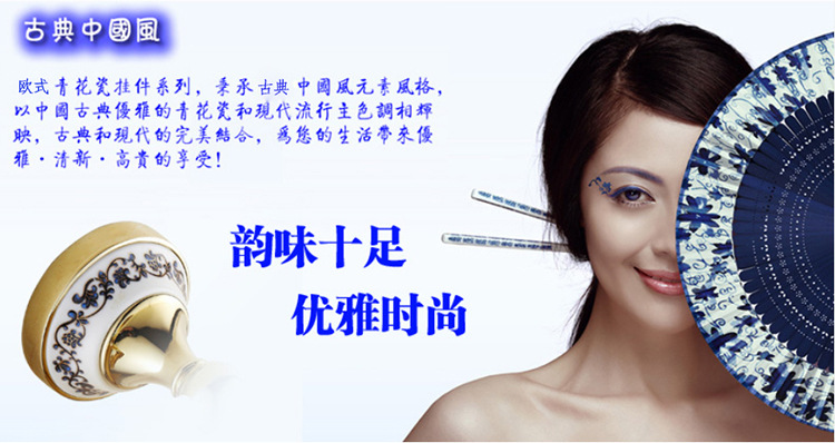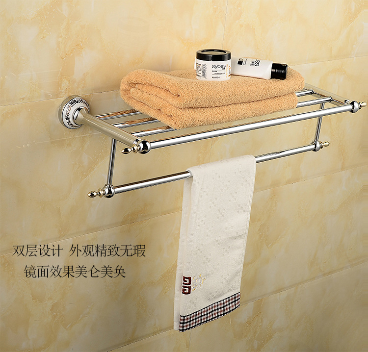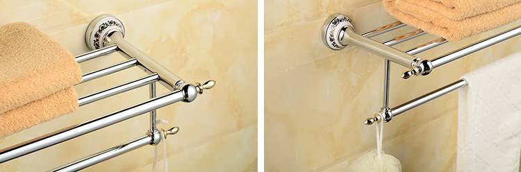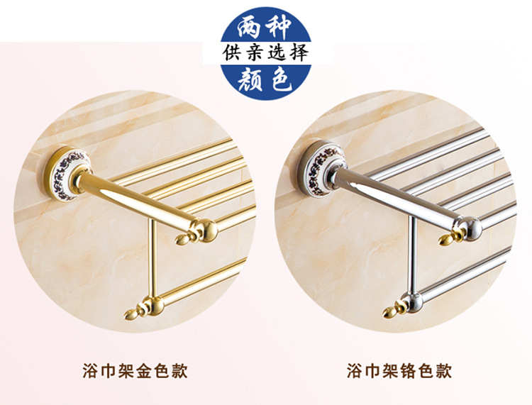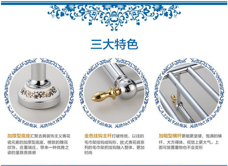 欧式青花瓷浴巾架毛巾杆 五金铜挂件 全铜青花瓷毛巾架