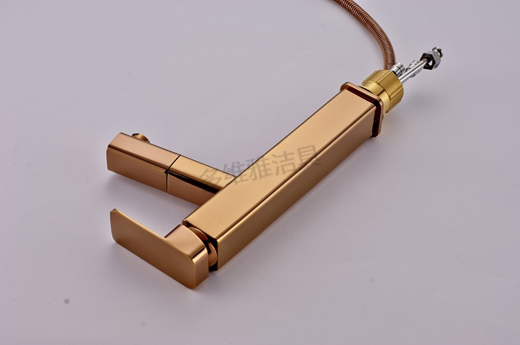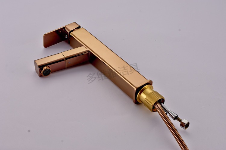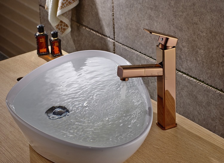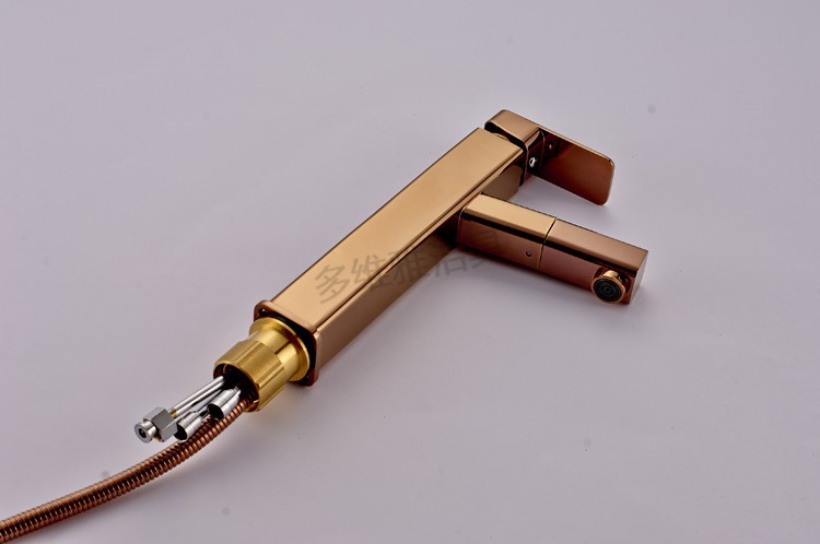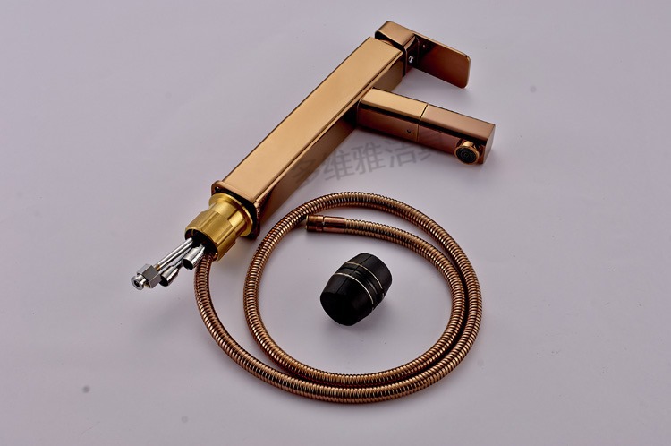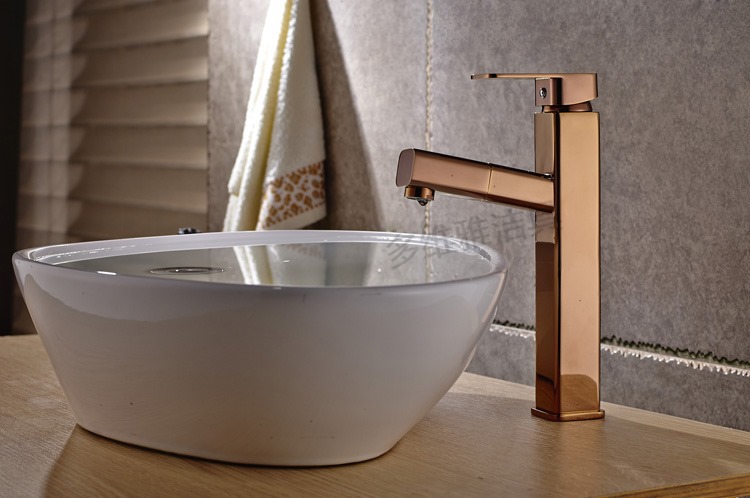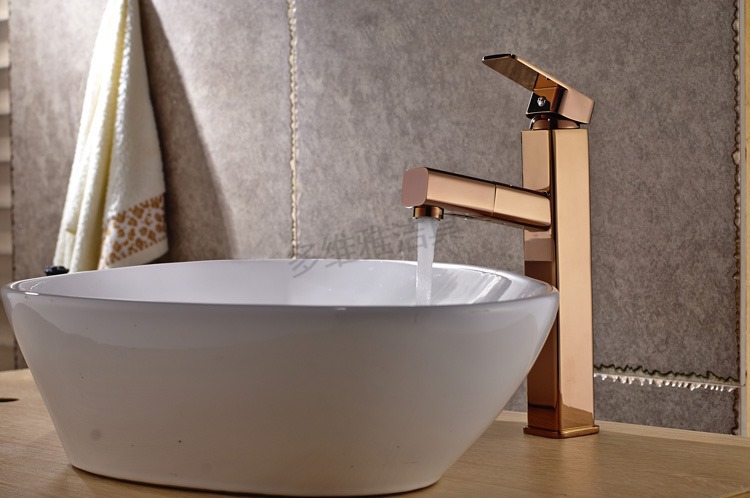 台上盆新款 全铜高款玫瑰金洗脸盆龙头 抽拉伸缩冷热水龙头