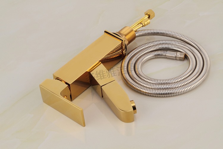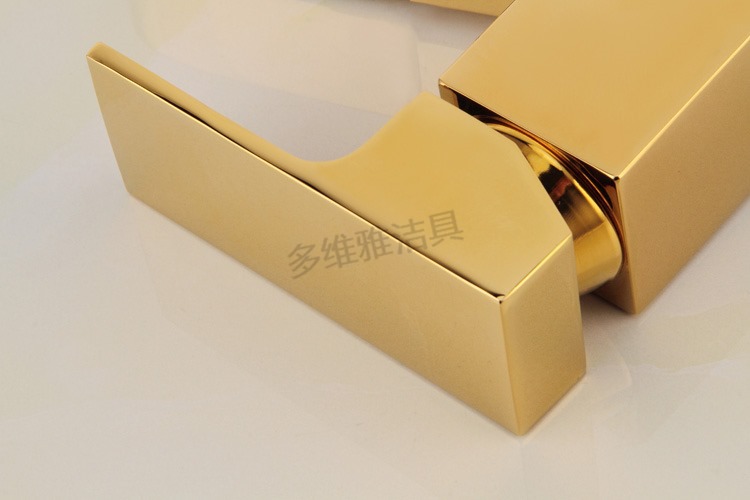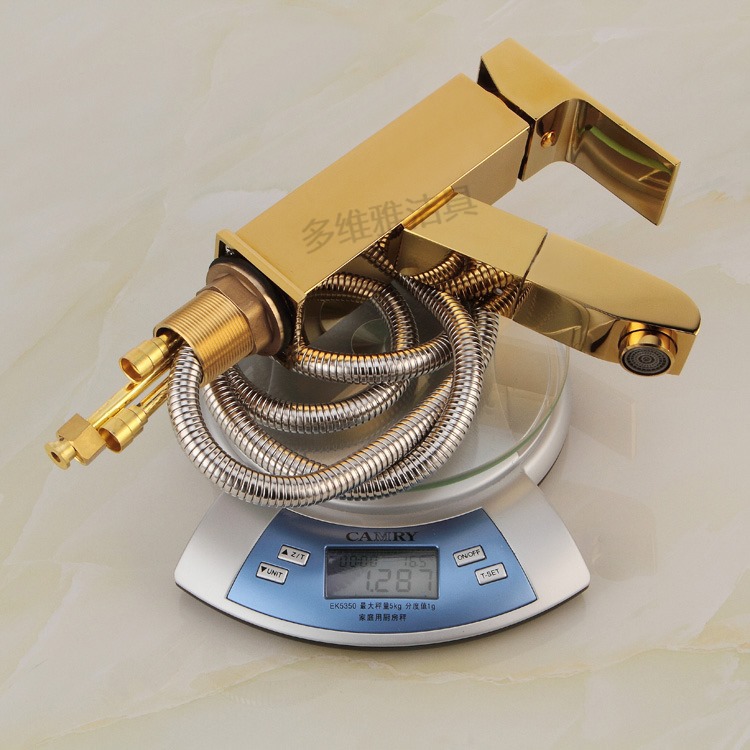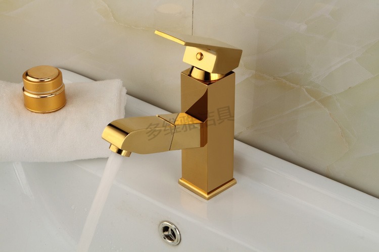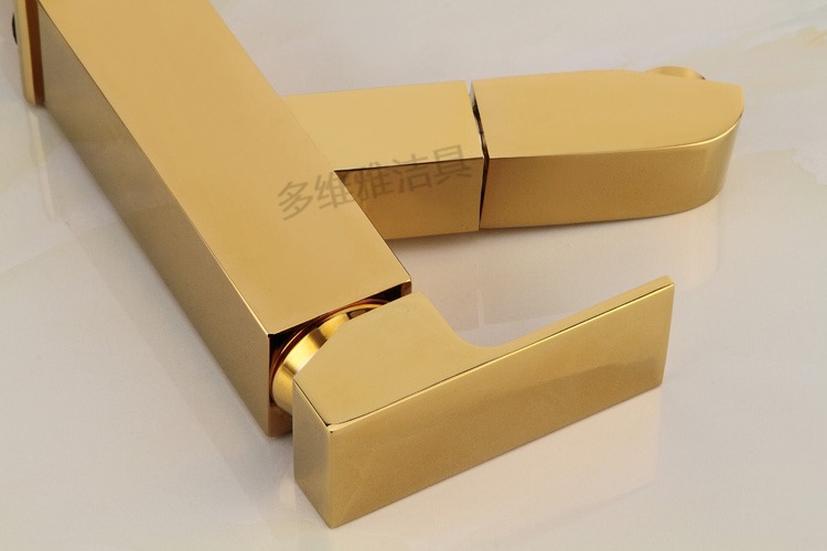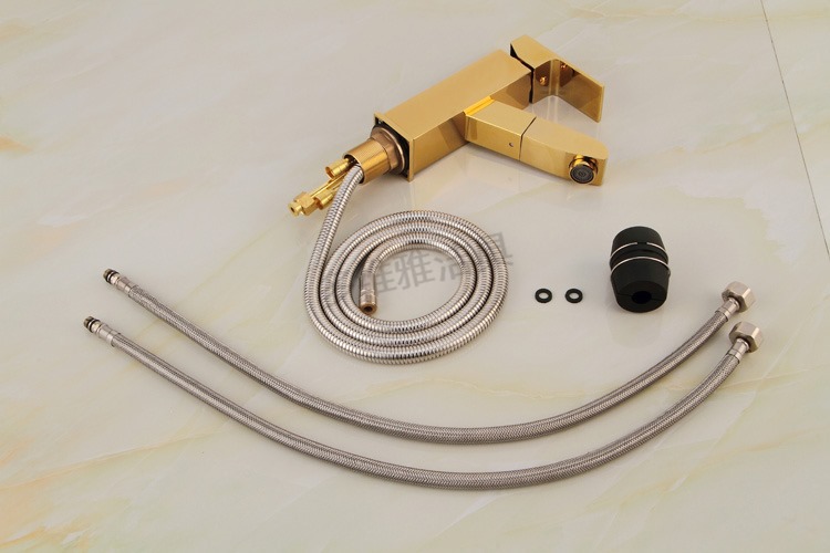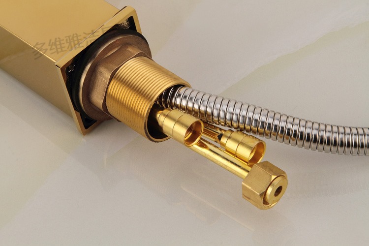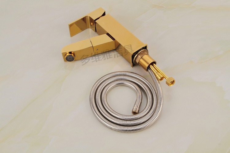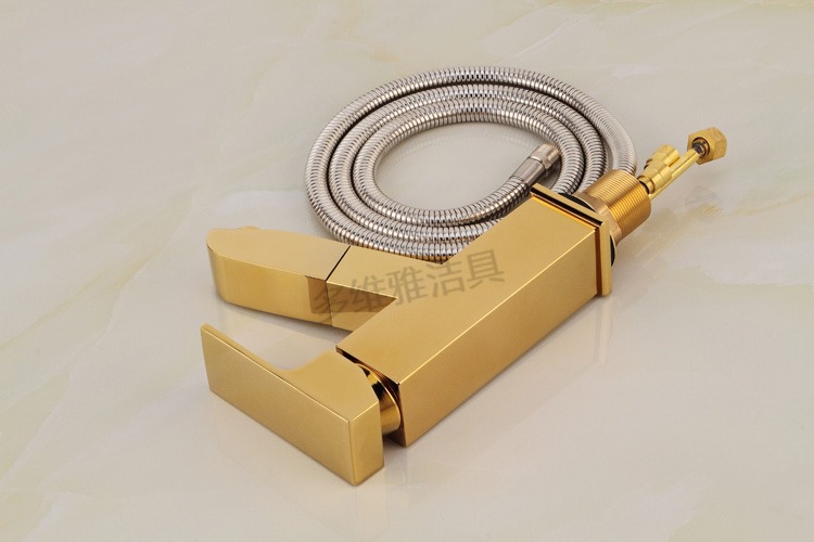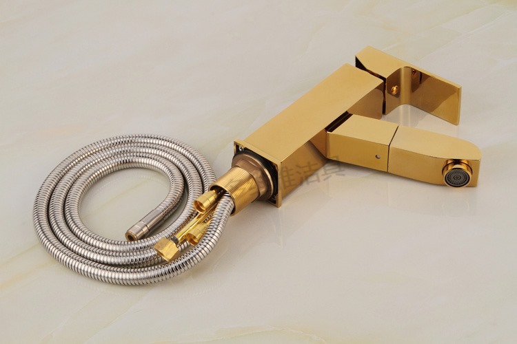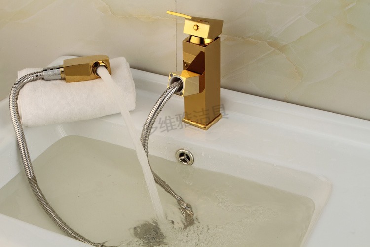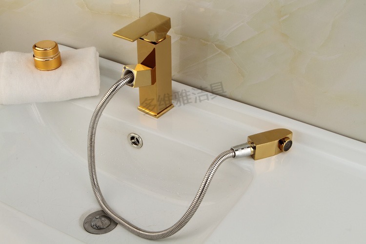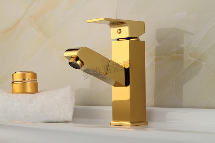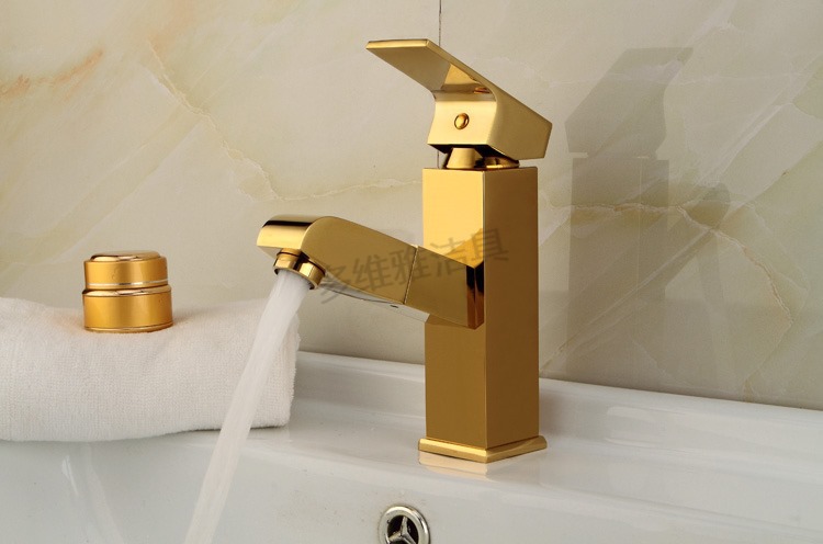 卫浴厂家批发冷热全铜四方抽拉面盆龙头 金色面盆抽拉水龙头