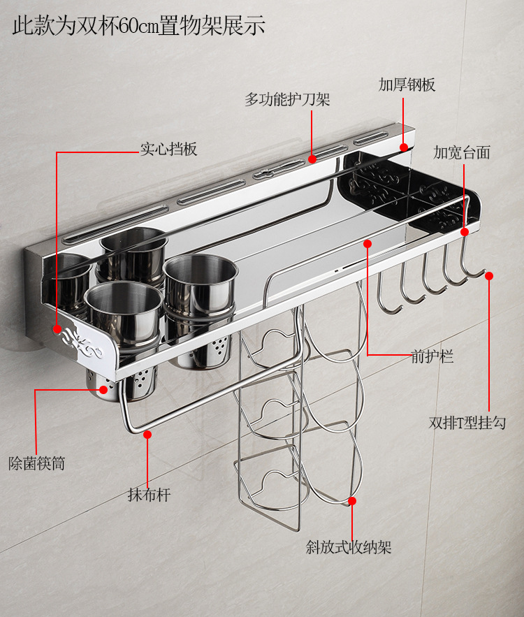 厨房多功能不锈钢厨房收纳架挂件 304不锈钢厨房置物架厂家直销