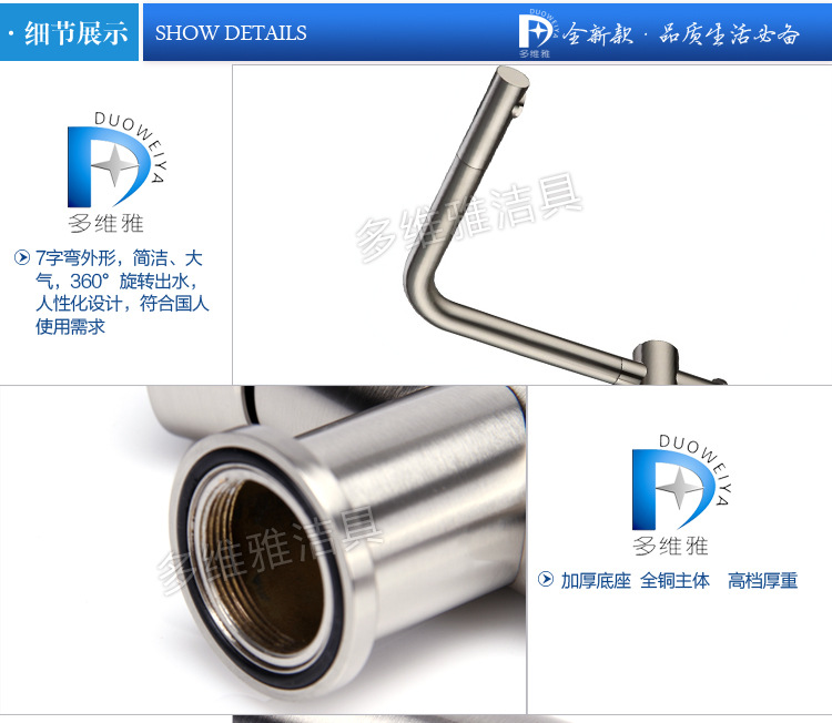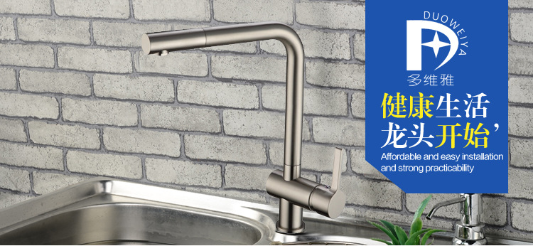 厂家供应 高档时尚嘴巴转动水龙头 拉丝全铜厨房水龙头
