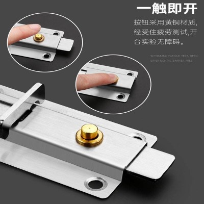 自动弹簧插销不锈钢酒店卫生间家用木门闩防盗按钮铜明装回弹插销