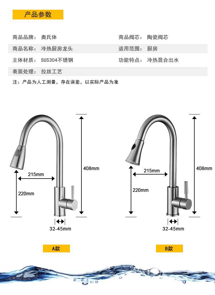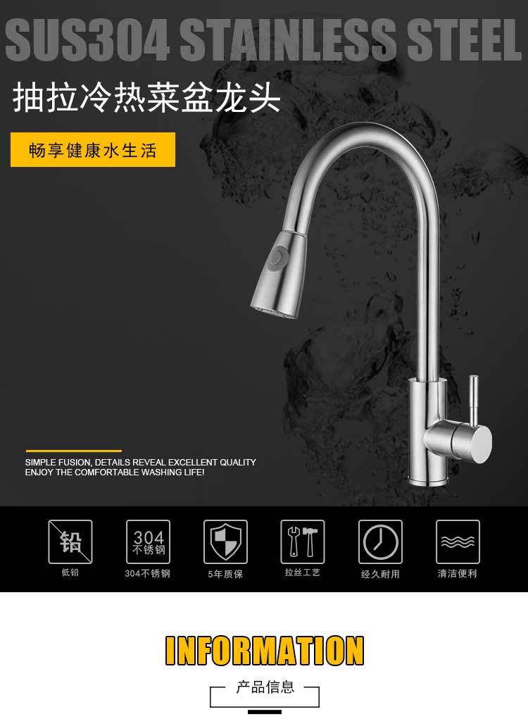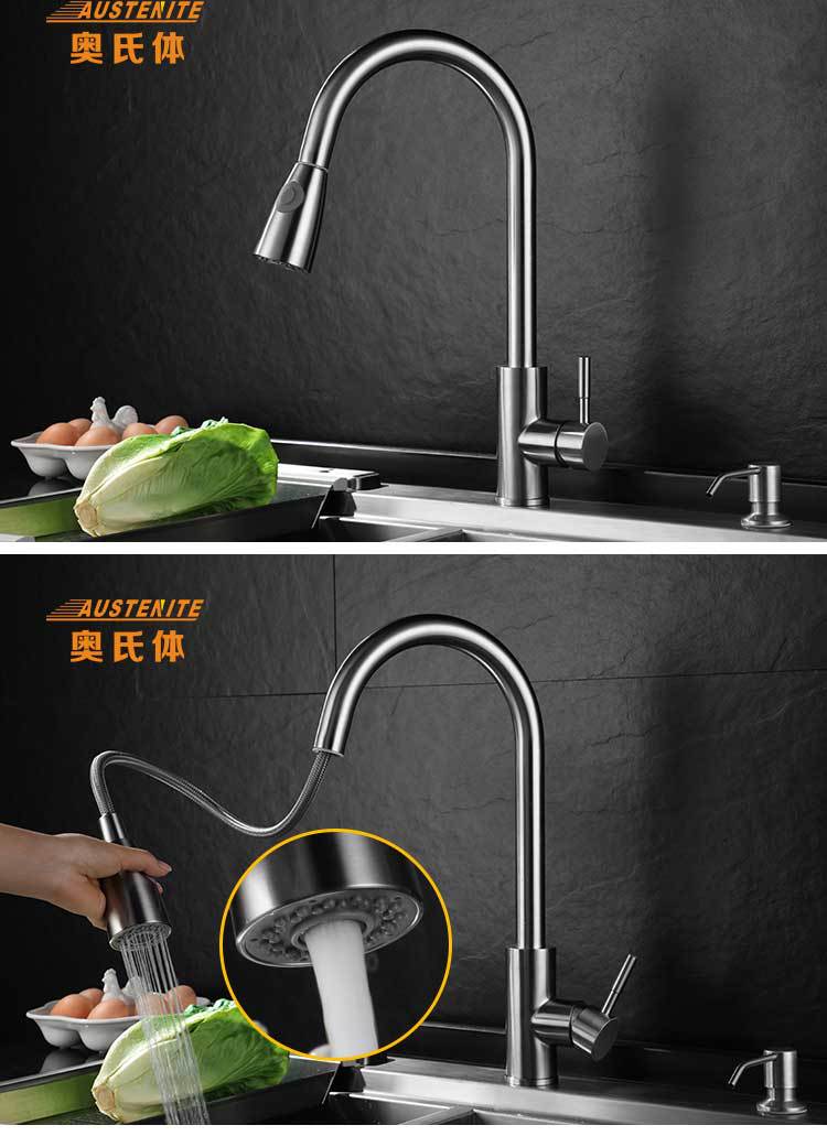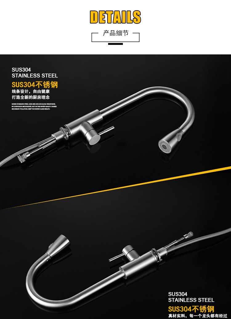 304不锈钢拉丝洗菜盆双水槽万向旋转抽拉厨房多功能冷热水龙头