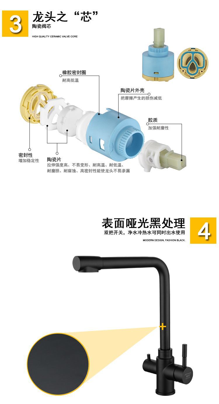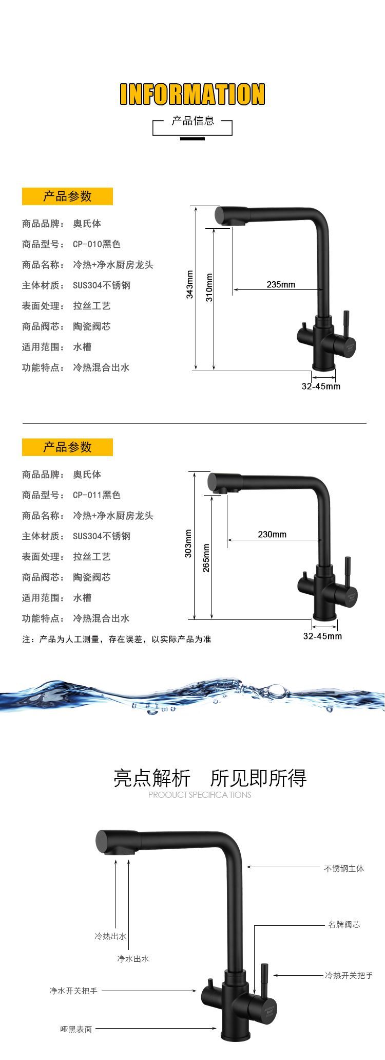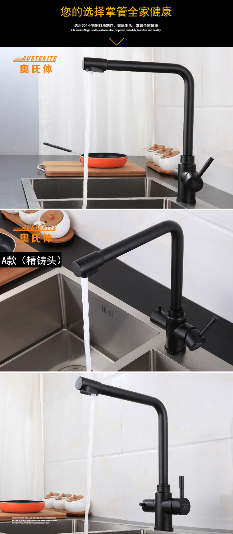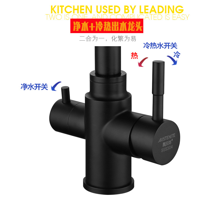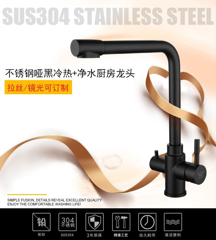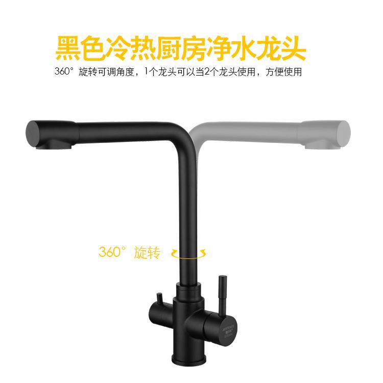 黑色304不锈钢纯净水冷热出水洗菜盆水槽三出水多功能厨房水龙头