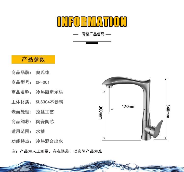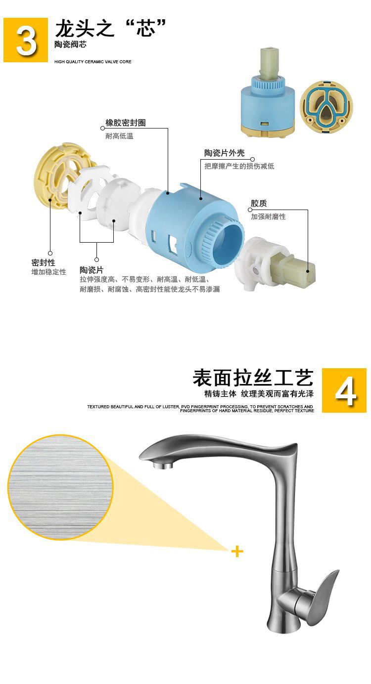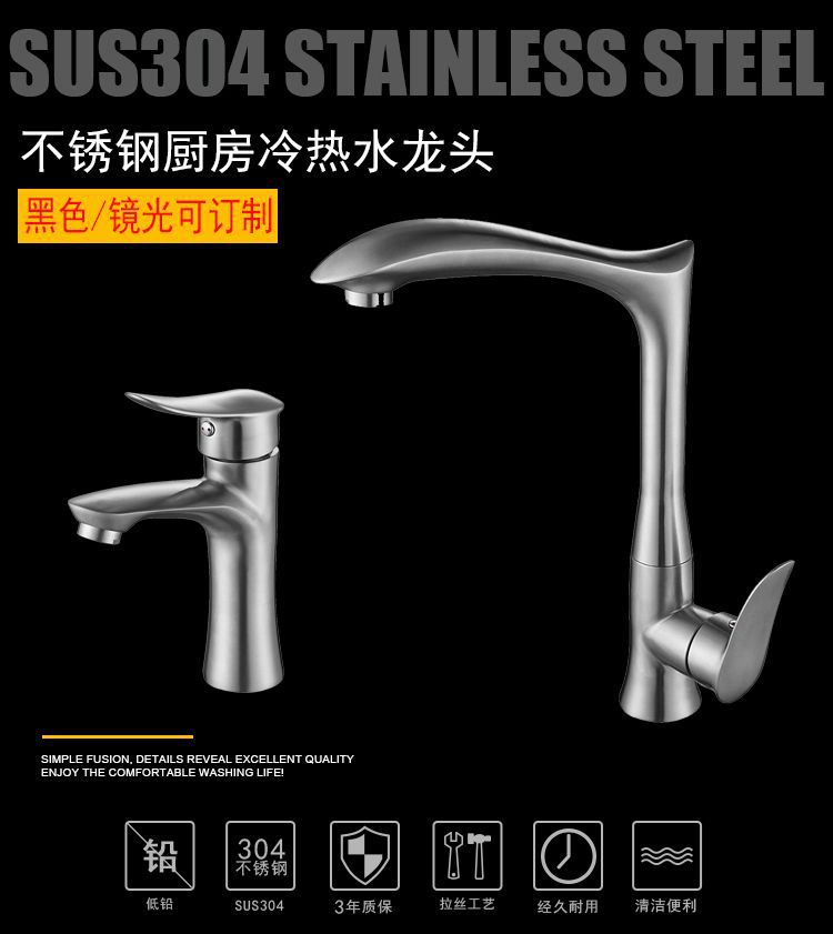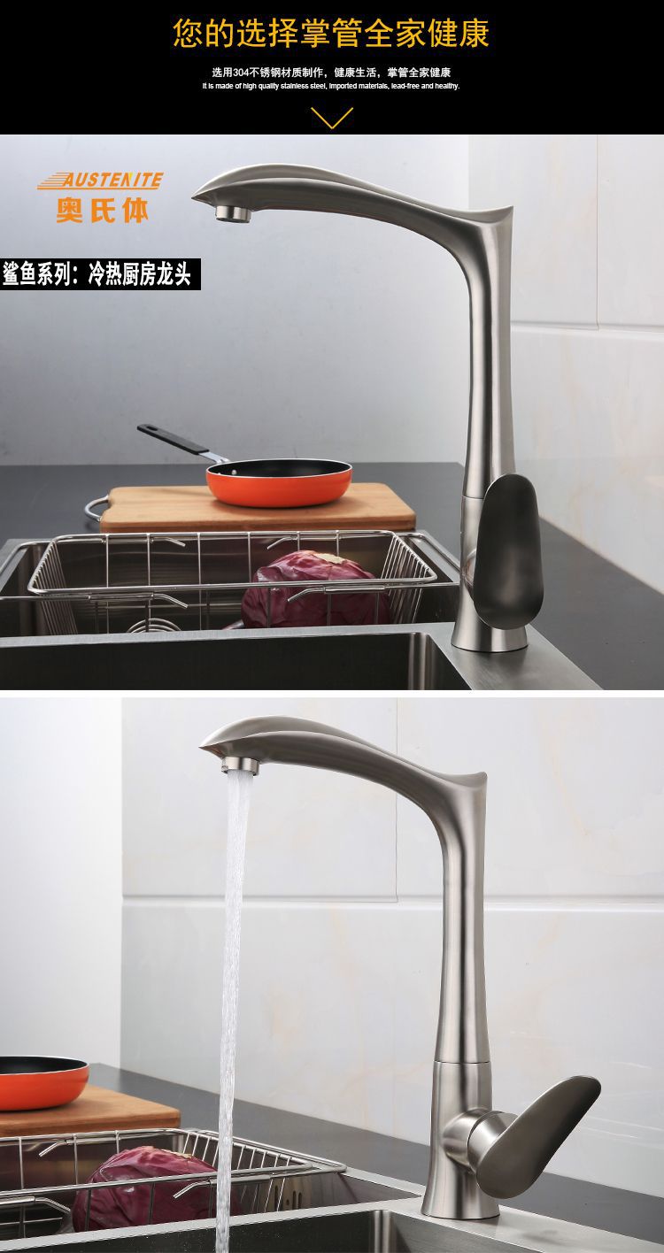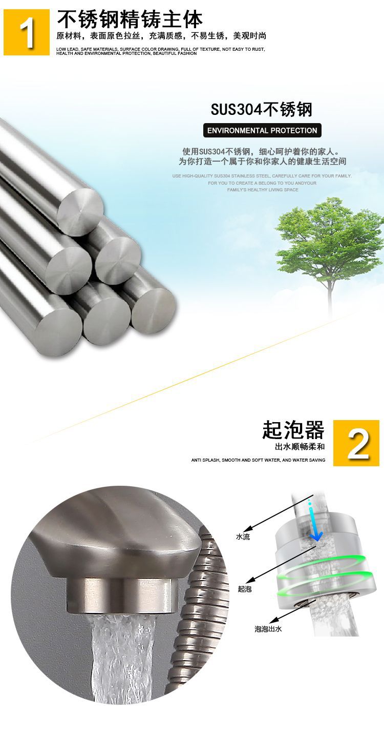 304不锈钢冷热洗菜盆精铸水槽双槽可旋转家用拉丝厨房水龙头