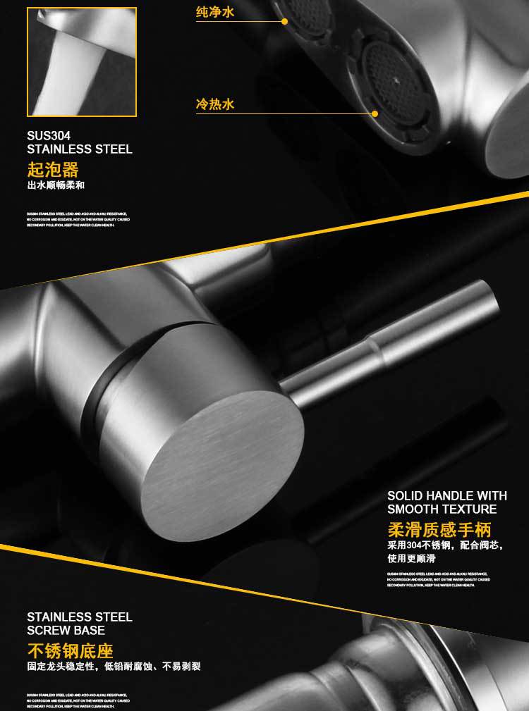 跨境专供 304不锈钢冷热厨房水龙头 黑色纯净水 水槽旋转龙头