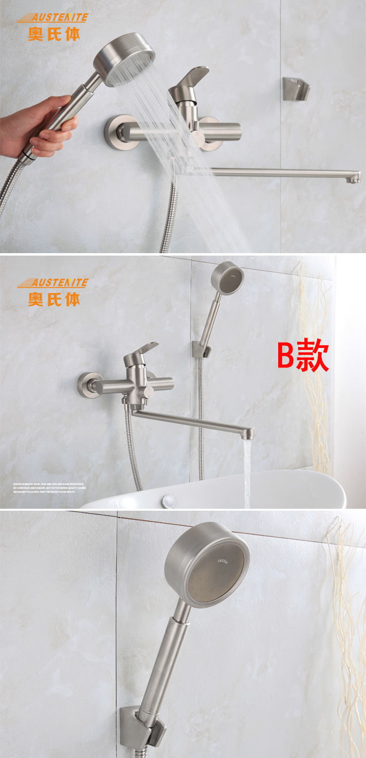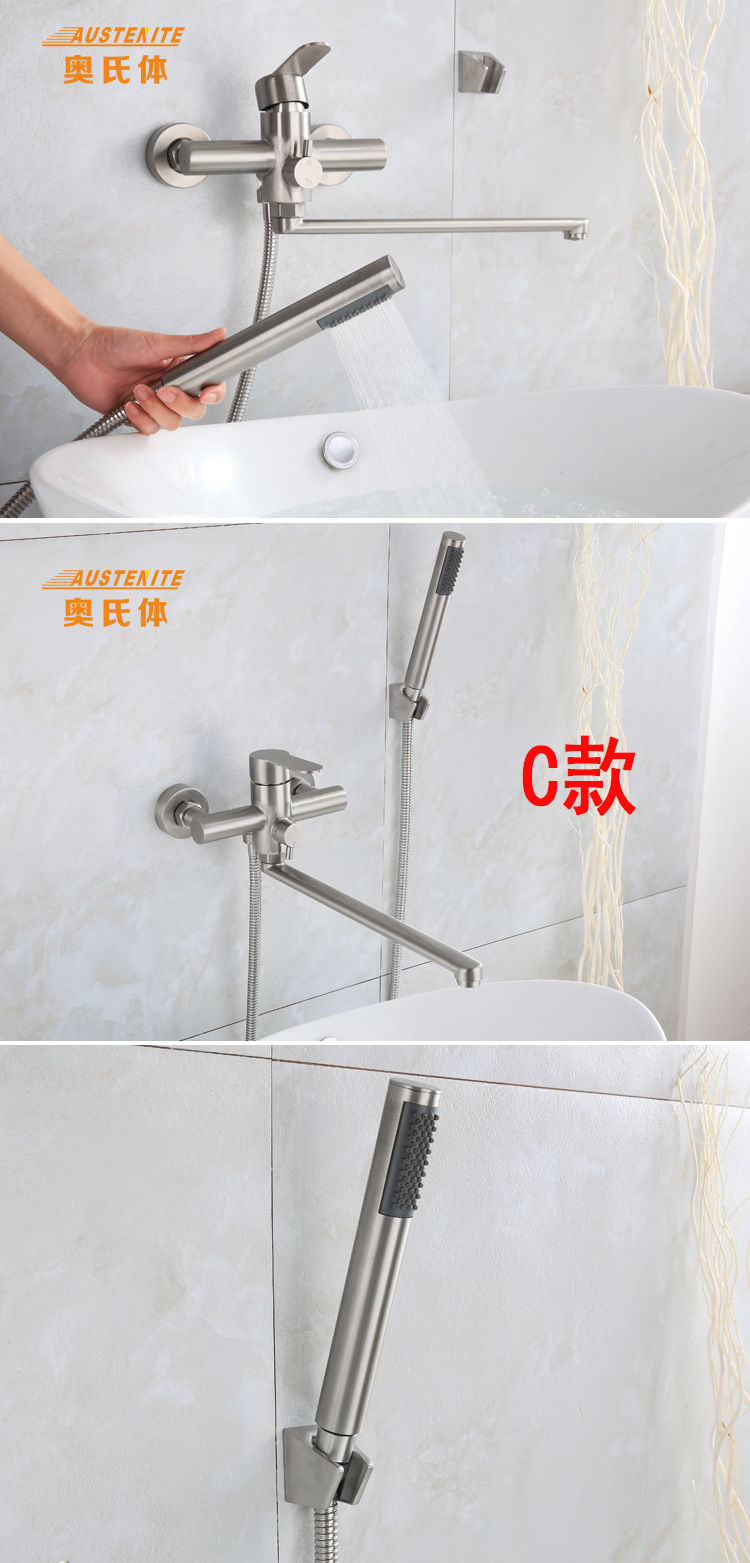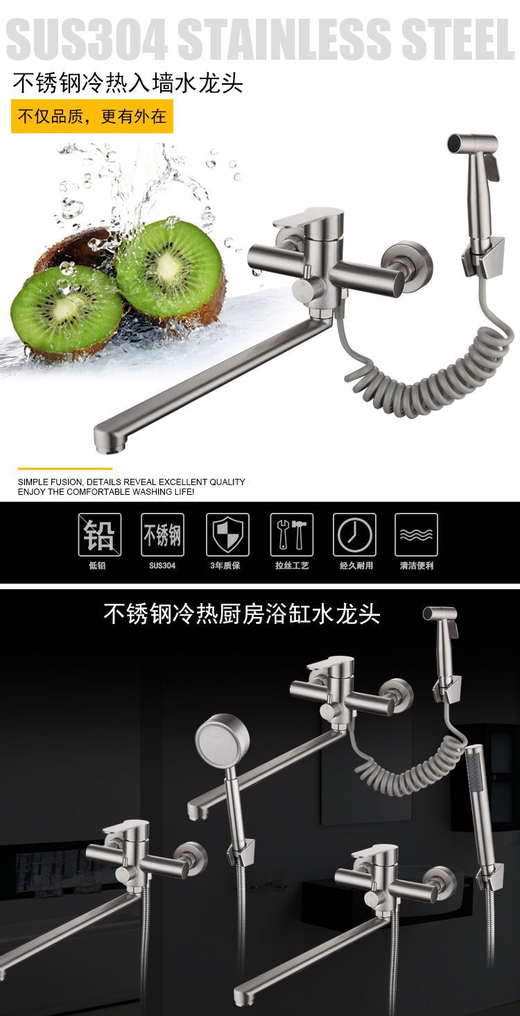 跨境304不锈钢拉丝入墙加长嘴厨房增压喷枪套装浴室多功能水龙头