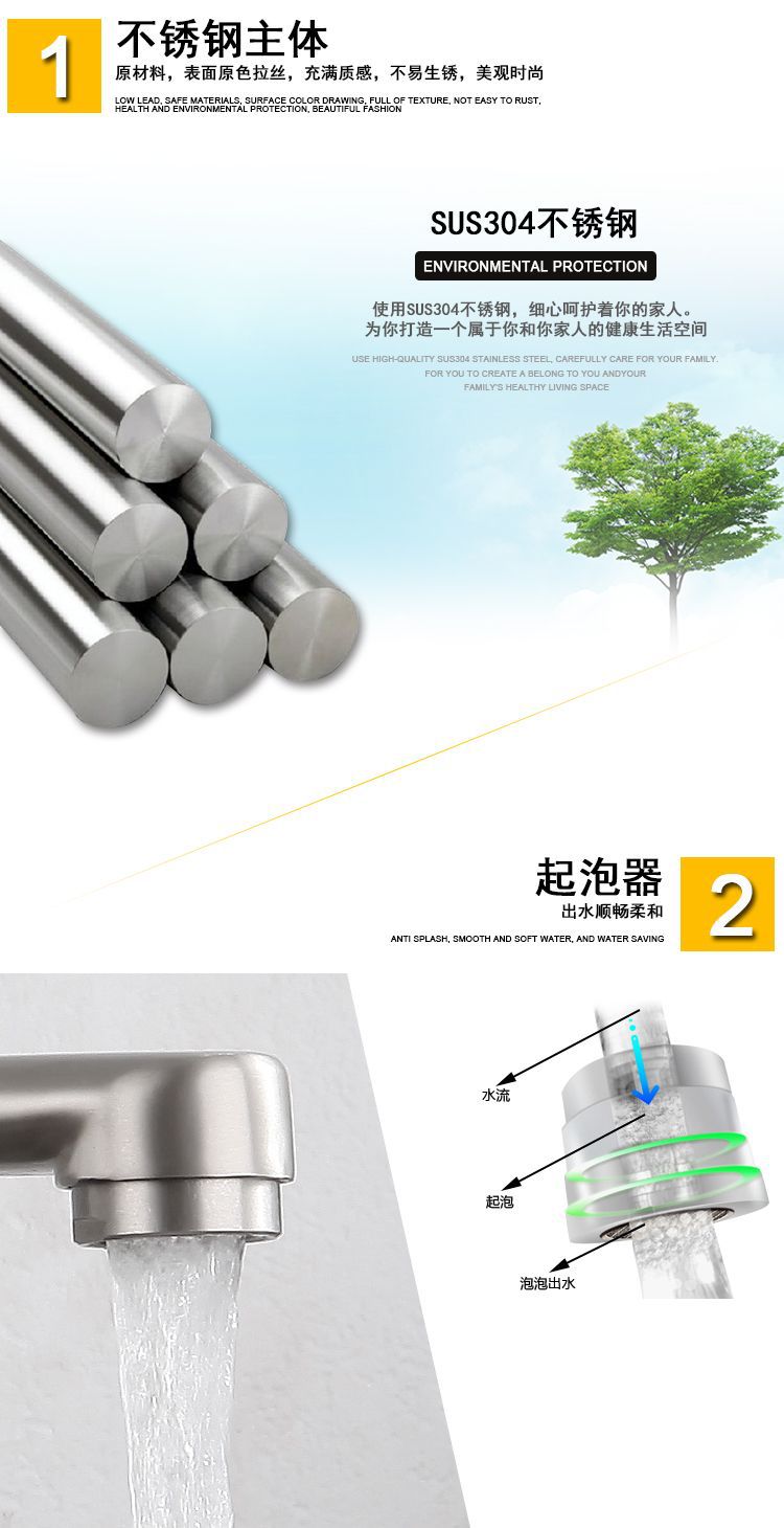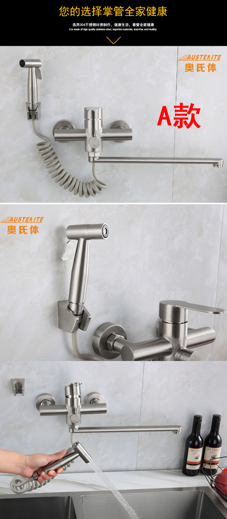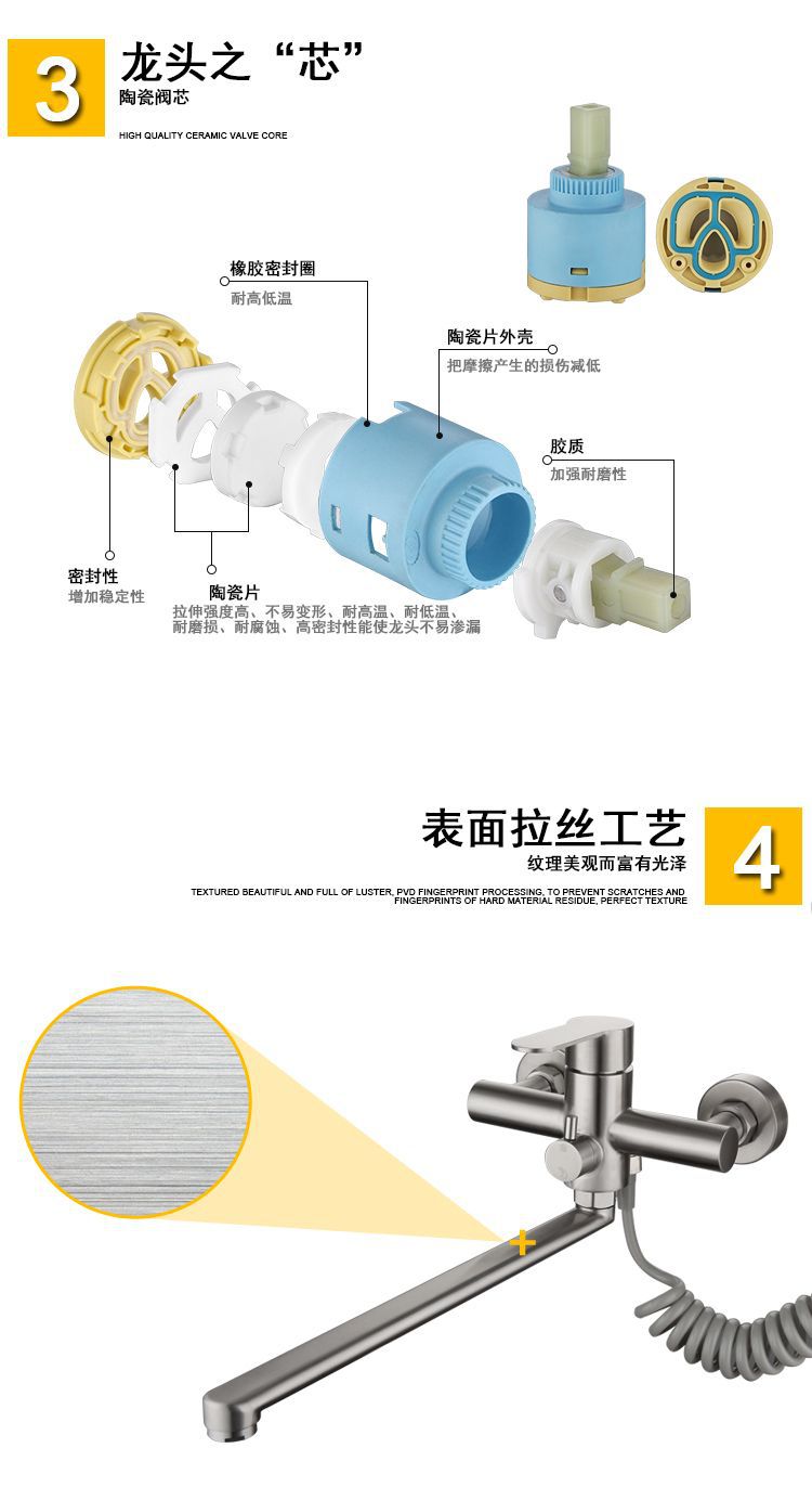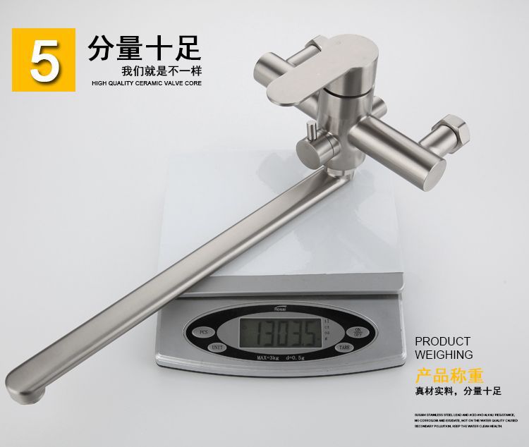 跨境304不锈钢拉丝入墙加长嘴厨房增压喷枪套装浴室多功能水龙头