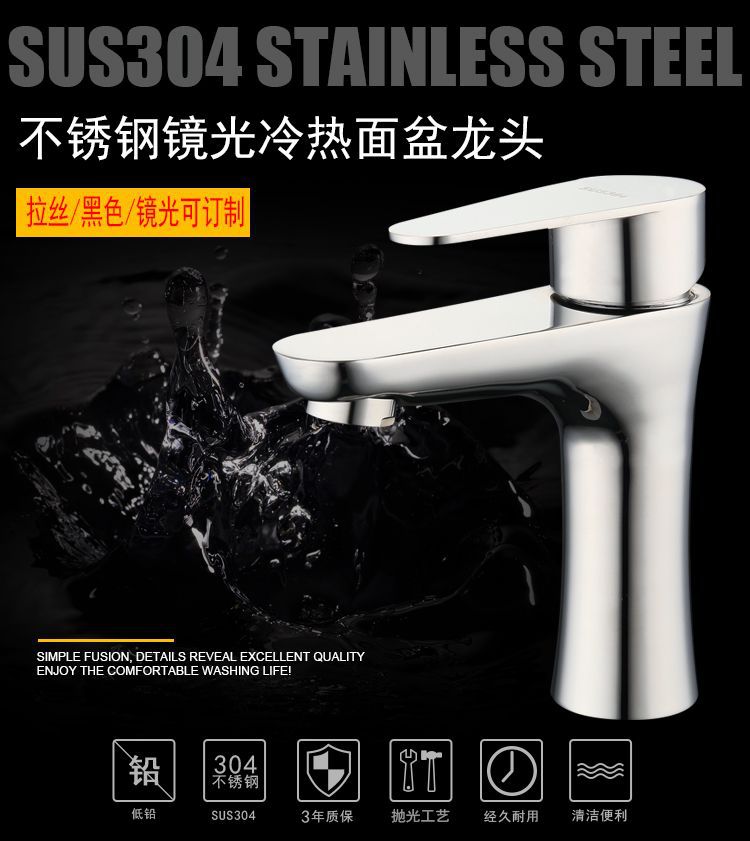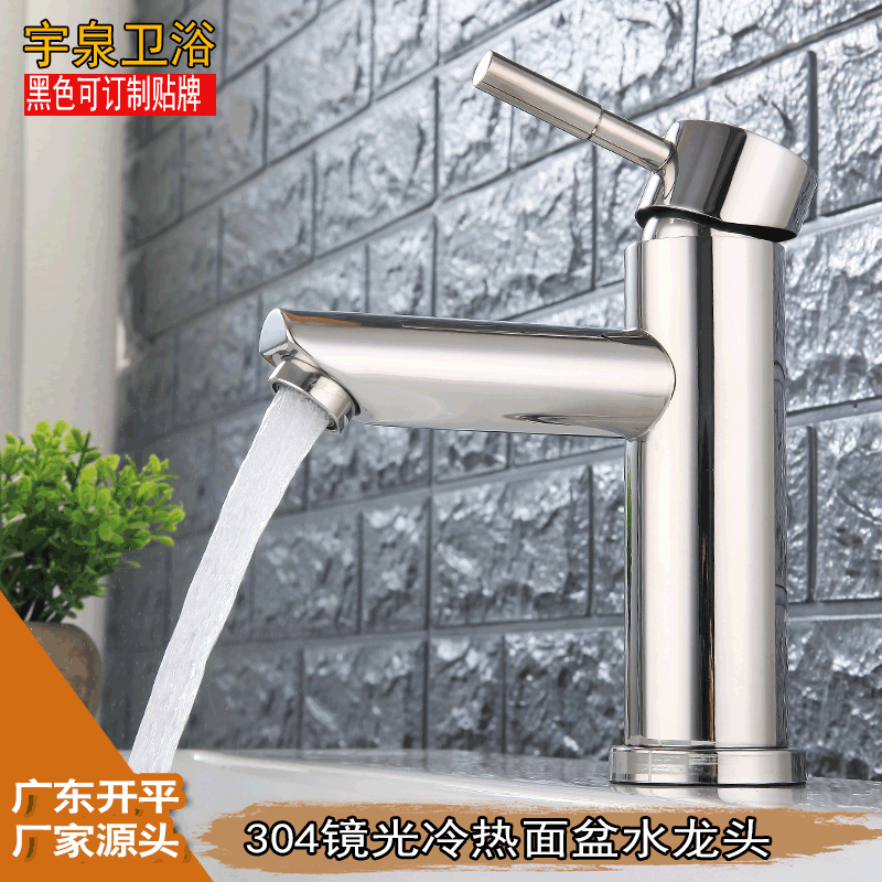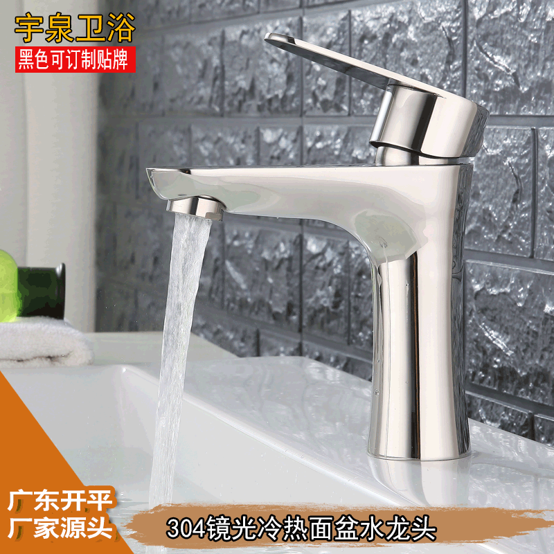厂家直销304不锈钢镜光洗脸盆浴室卫生间面盆冷热单孔水龙头