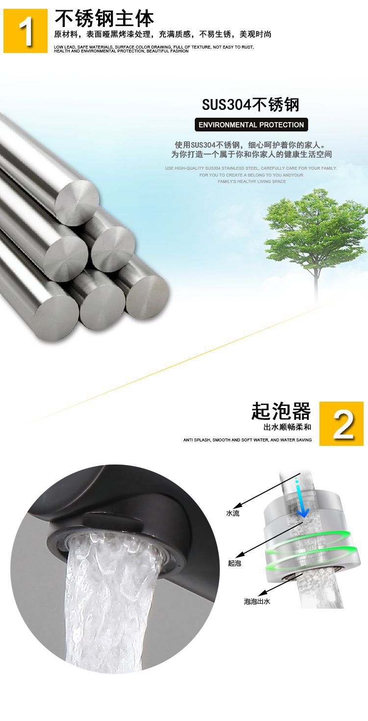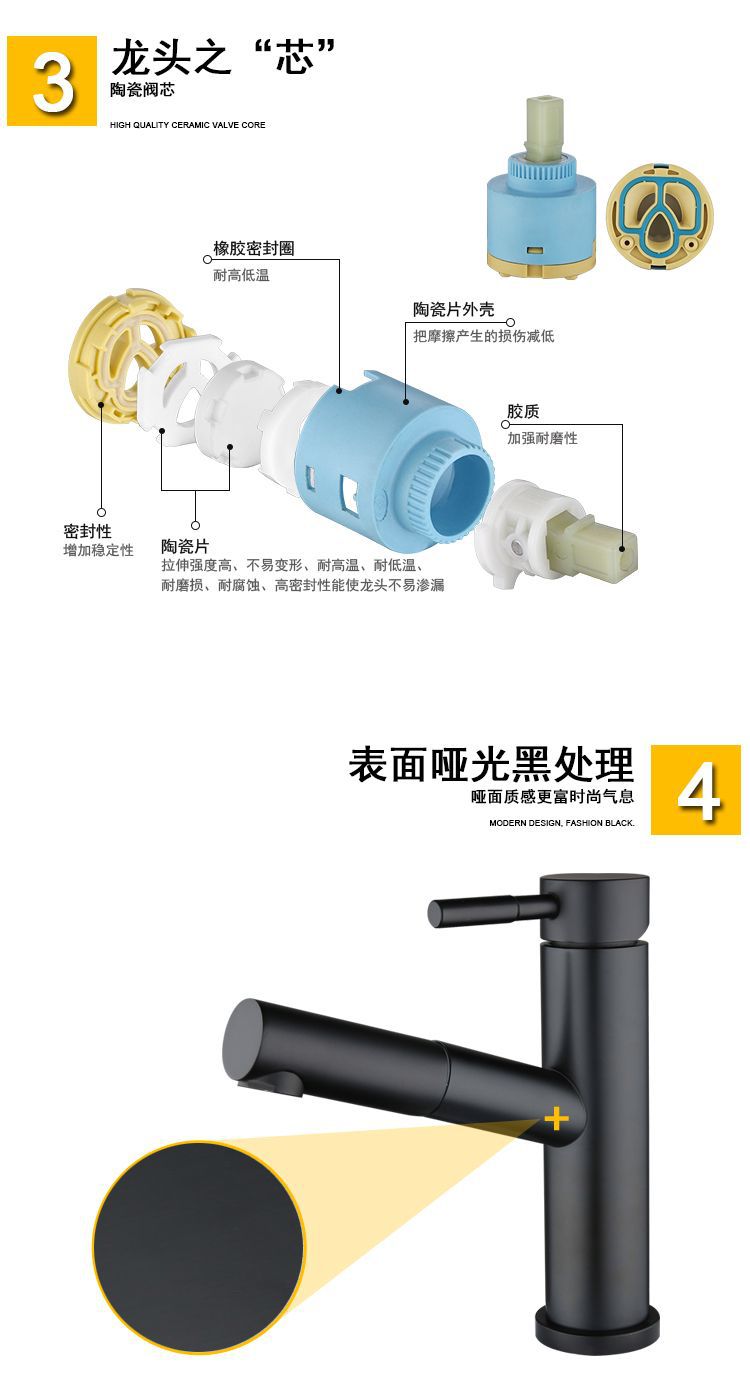 开平厂家黑色304不锈钢浴室洗脸盆陶瓷盆单孔可旋转咀面盆水龙头