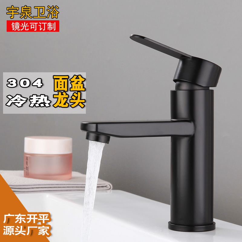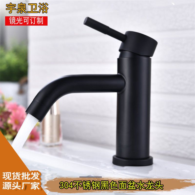 批发304不锈钢 黑色冷热面盆单孔洗脸盆台下盆陶瓷盆浴室水龙头