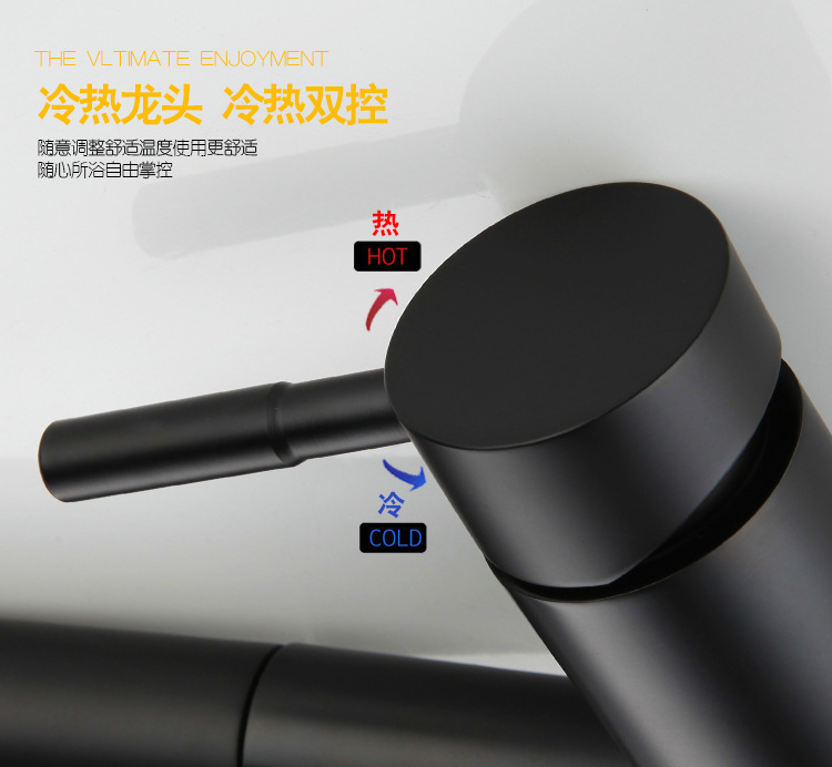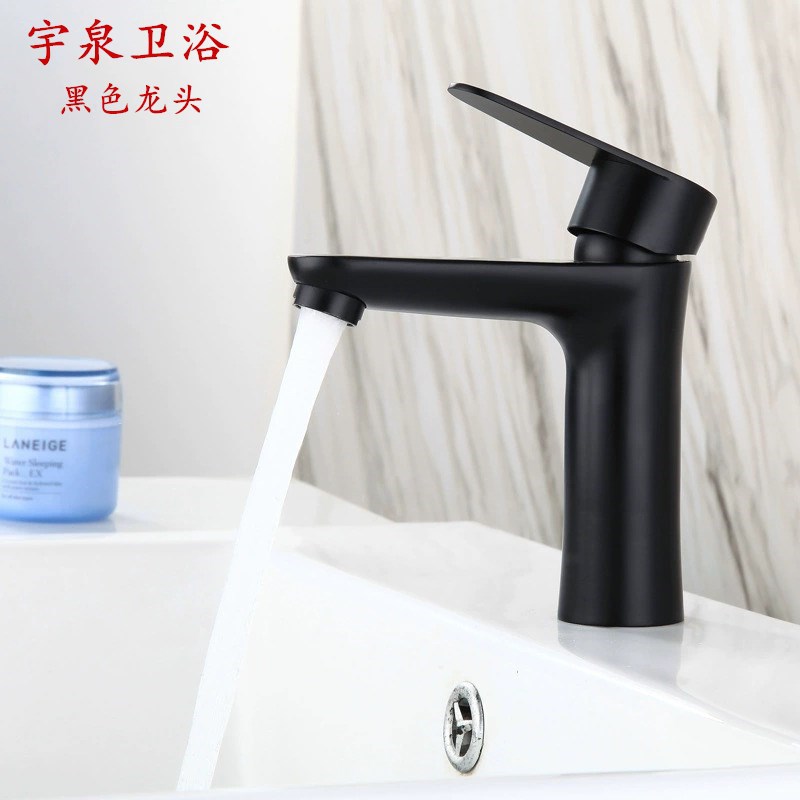 开平厂家304不锈钢黑色烤漆台盆陶瓷盆冷热浴室单孔面盆水龙头