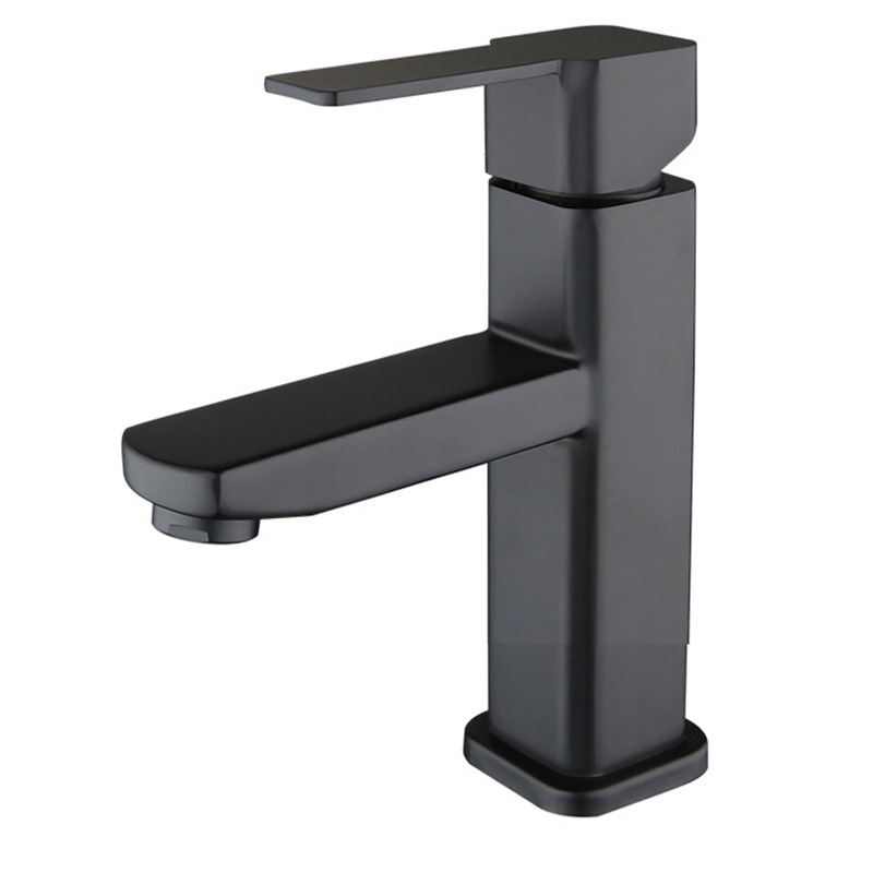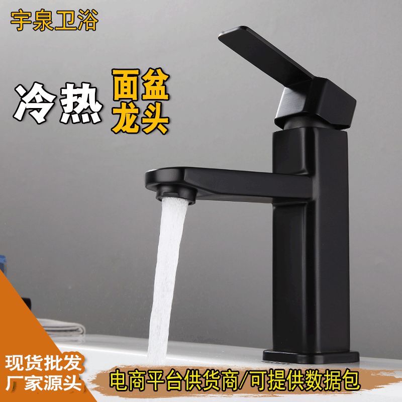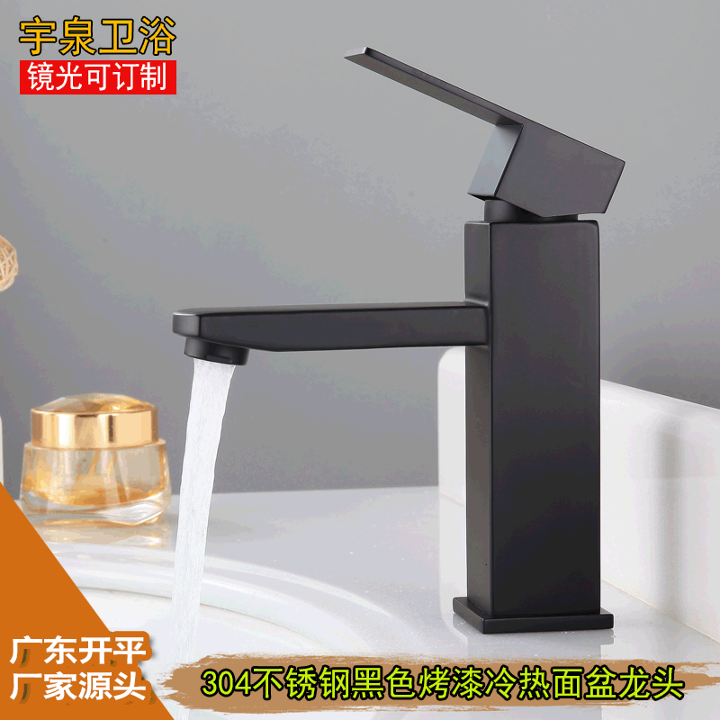 304不锈钢黑色冷热面盆水龙头方形单孔复古浴室台盆龙头批发厂家